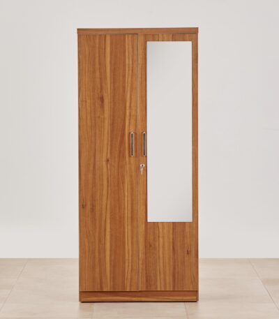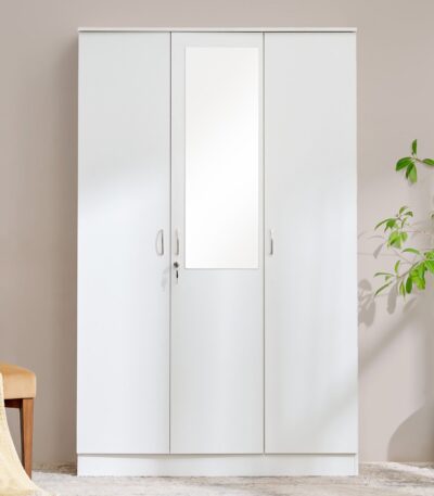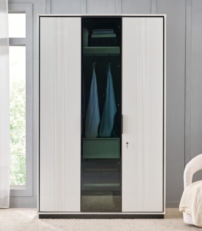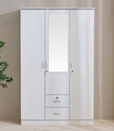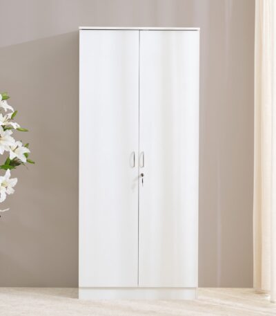 Contemporary White 2-Door Wardrobe with Lockable Drawer & Hanging Rod