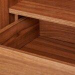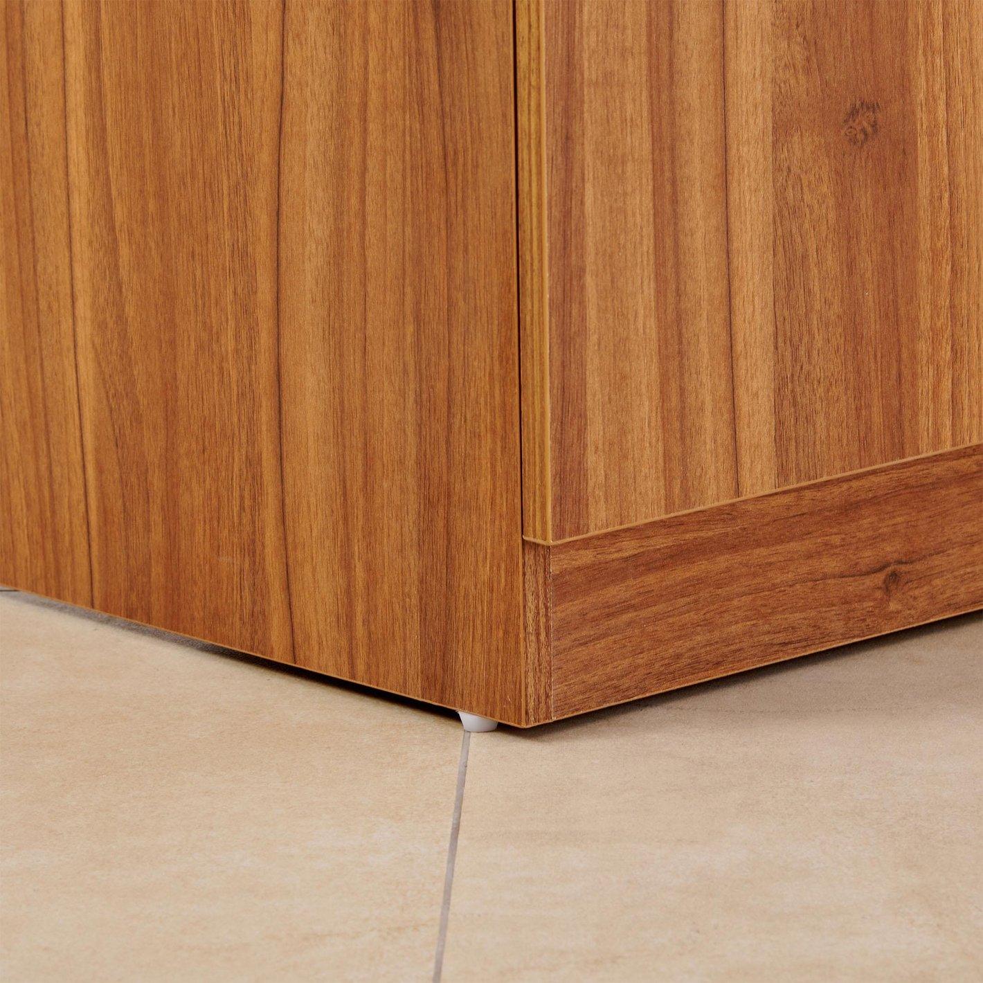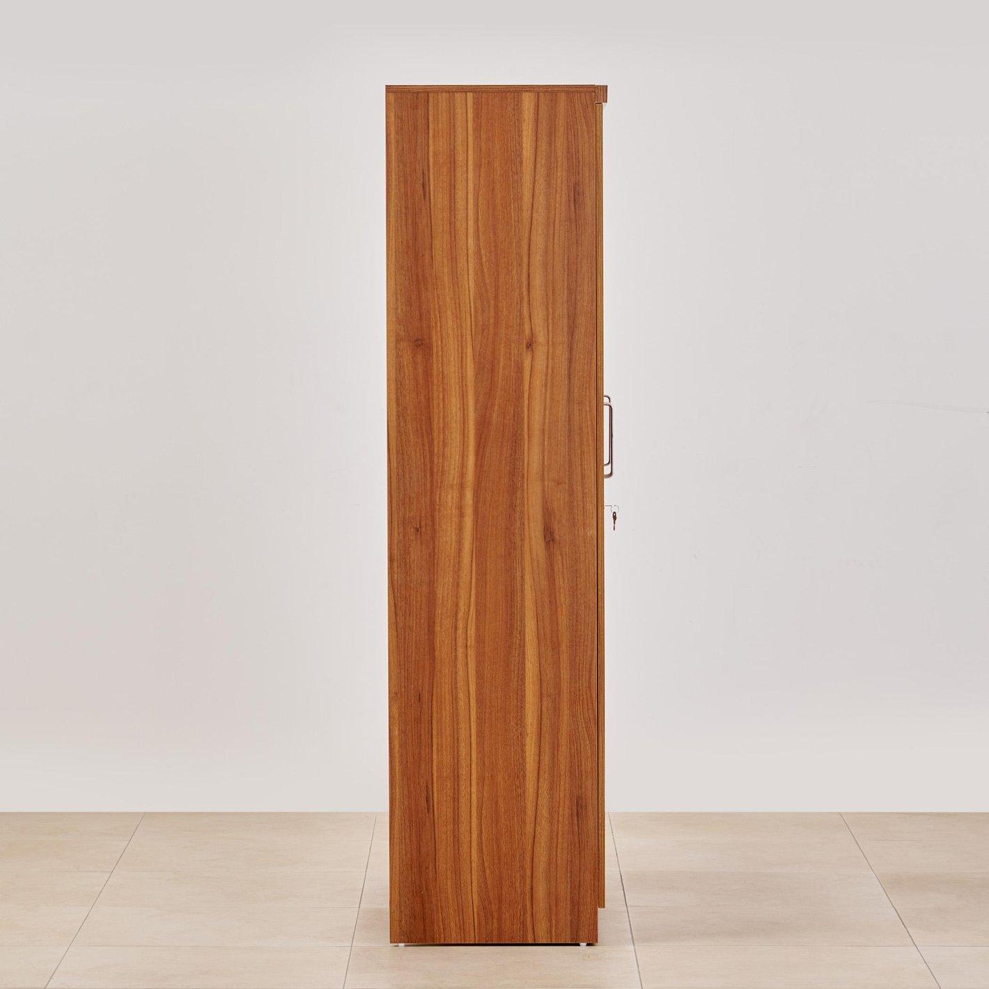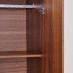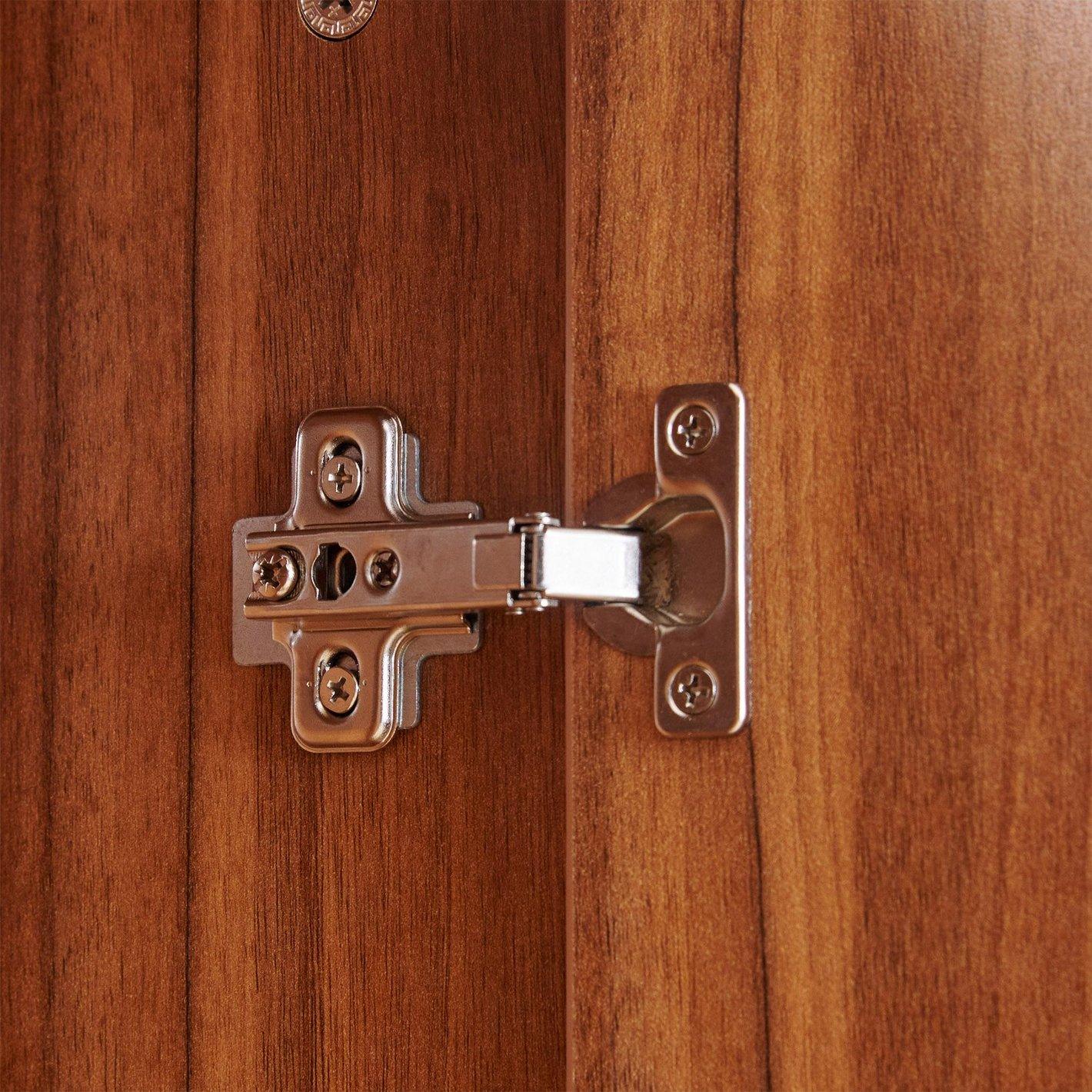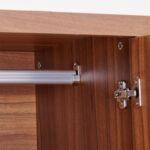 Durable Wood-Grain Finish: Crafted with a high-quality Walnut laminate that is scratch-resistant and easy to maintain, featuring sleek vertical chrome handles for a modern touch.