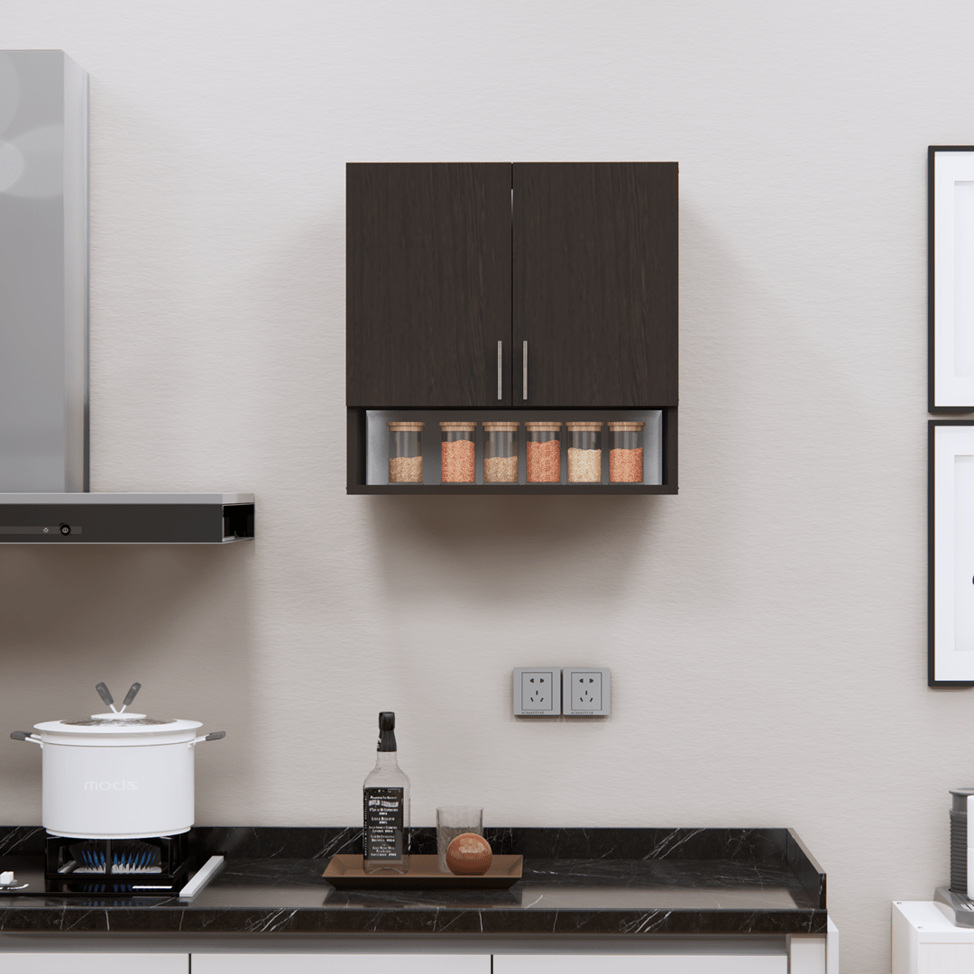 2-Door Modular Wall Cabinet with Organizer Shelf in Chiyoda Wenge Finish (DIY Assembly)