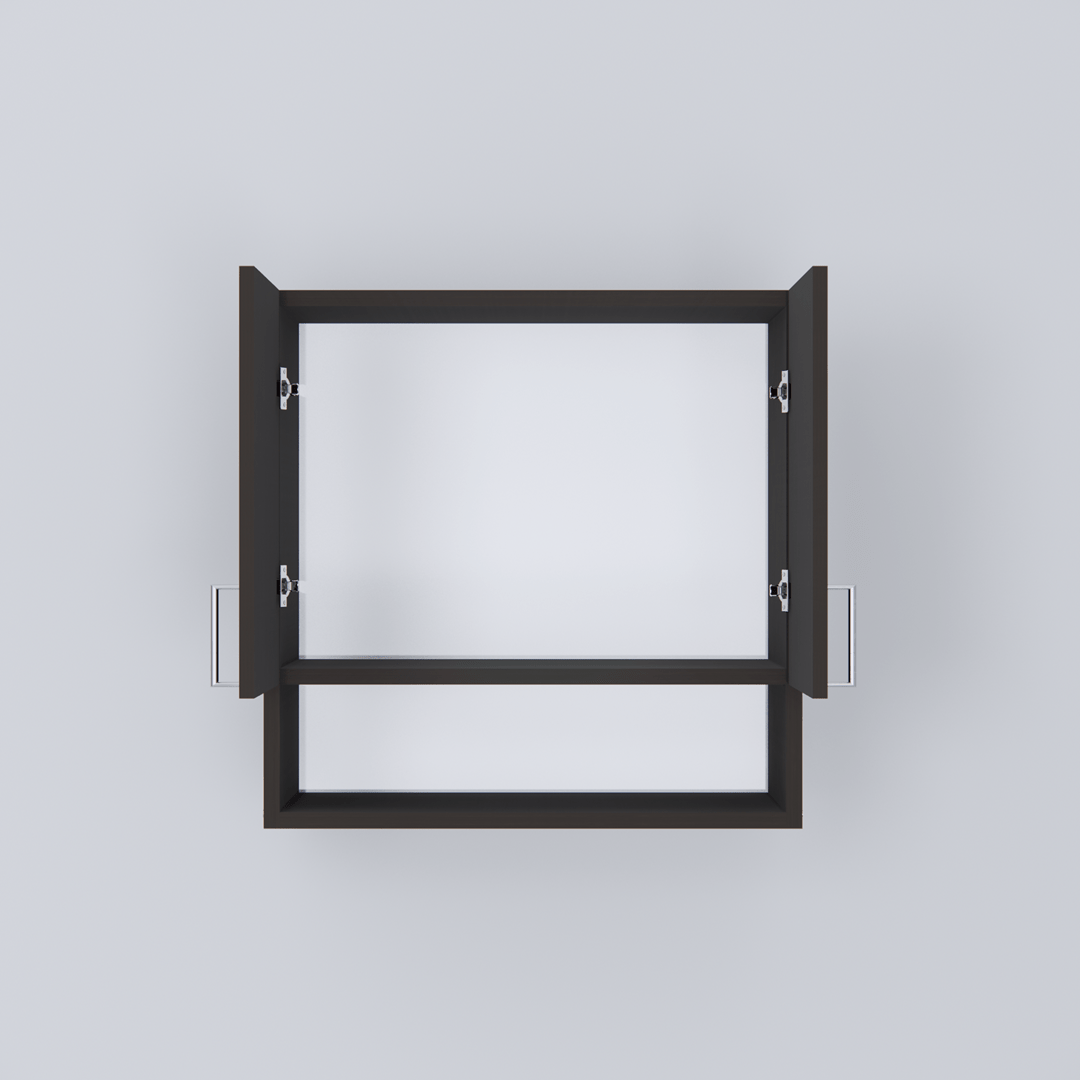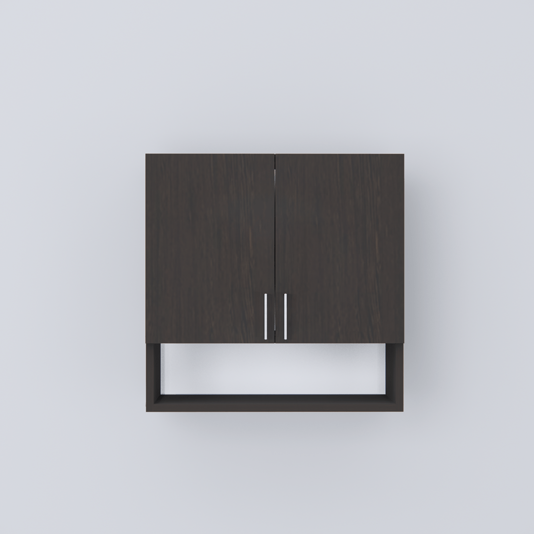 Wall mounted modular kitchen cabinet having 2 shevles & 2 door with beautiful aluminum silver metal handle. 10 years guarantee against Borer and Termites.