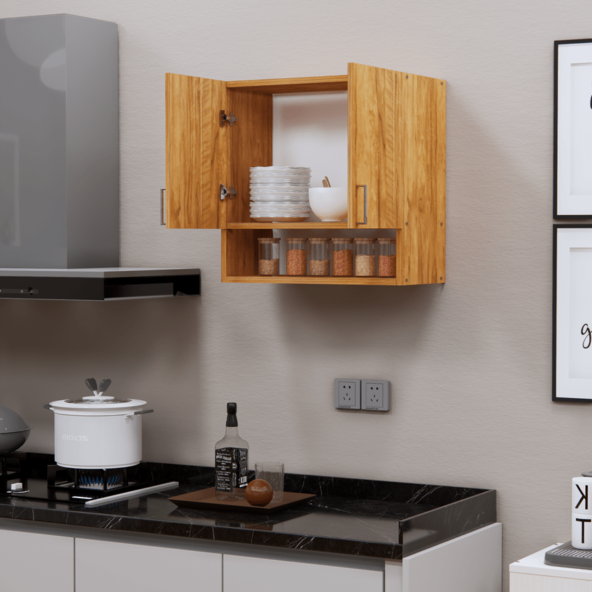This Plateau Apple Matte finish multipurpose storage Cabinet made from environment friendly European Standard Engineered wood. It can be used as a storage cabinet in a modular kitchen. 2 shelves & 2 doors with beautiful aluminum silver metal handle with Open Organizer Shelf can store infrequently used items to maintain your items clean and dry make your space organized and comfortable. Scientific design greatly improving space utilization. Pairing door with 2 shelves, A wall mount display ensures your storage box for kitchen remain within sight so cooking only gets easier! With it’s wider Compartment design this is the ultimate space saving kitchen organizer, you can store all of your spice containers for kitchen, masala box for kitchen, plastic oil cans, plastic boxes for storage, kitchen containers set, kitchen accessories for home, container for kitchen storage set, etc.