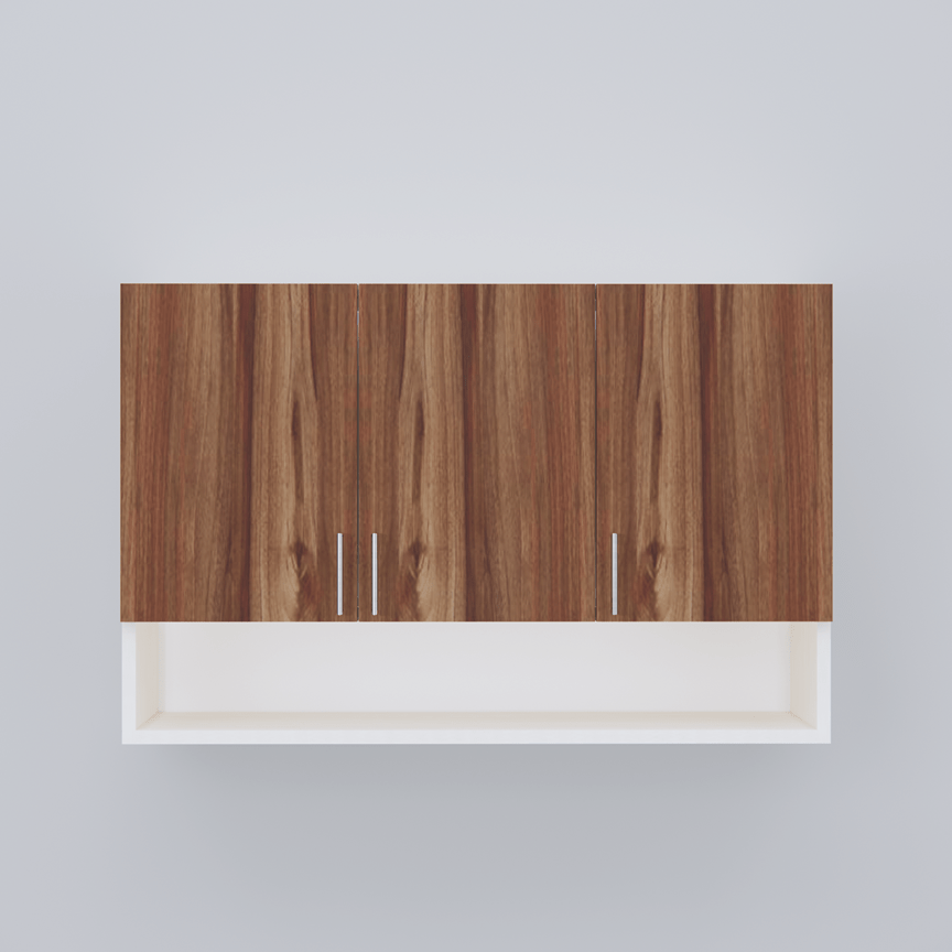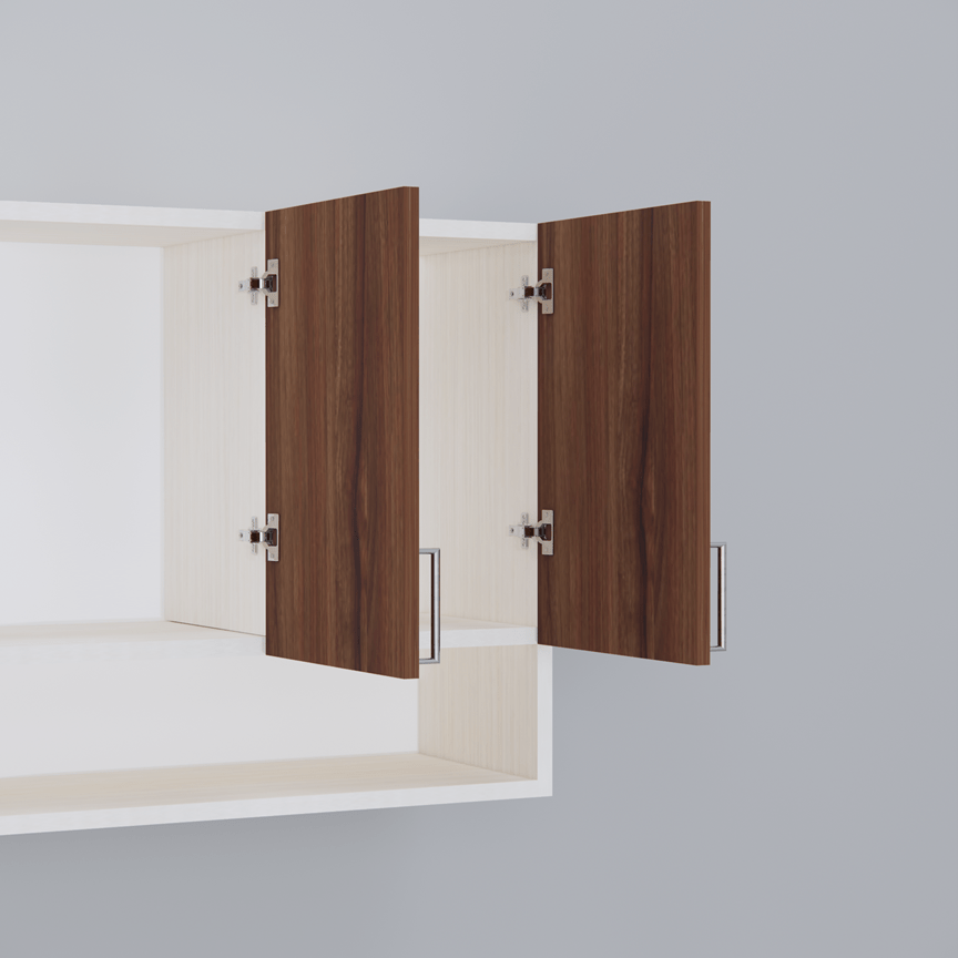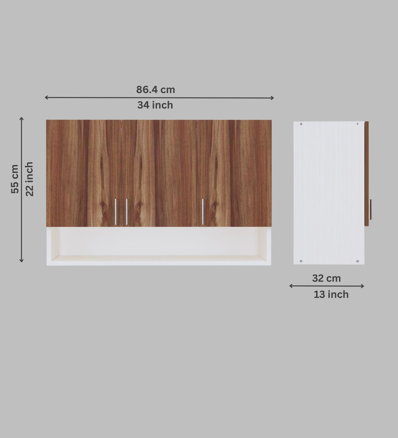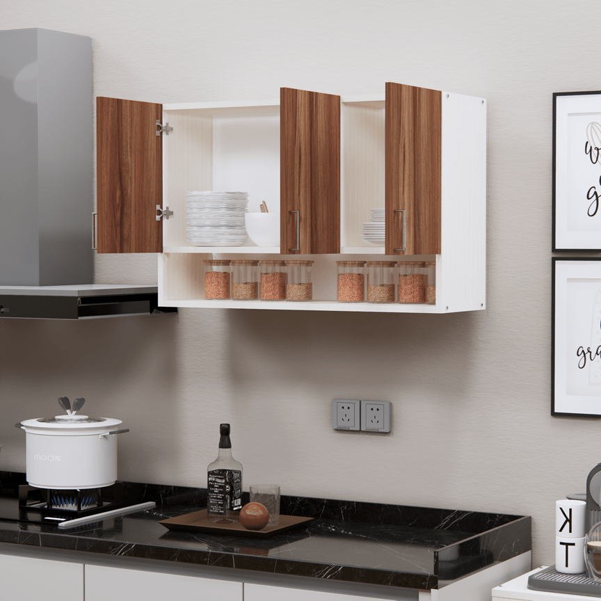 This Asian walnut & Highland Pine Matte finish multipurpose storage Cabinet made from Engineered wood. Upgrade your kitchen with this elegant wall-mounted storage cabinet made from eco-friendly European Standard Engineered Wood. Featuring 3 doors, 3 shelves, and an open organizer, it’s perfect for storing spices, containers, and kitchen essentials. Stainless steel handles add a modern touch, while the smart design maximizes space and keeps your items clean, dry, and within easy reach. Ideal for modular kitchens.