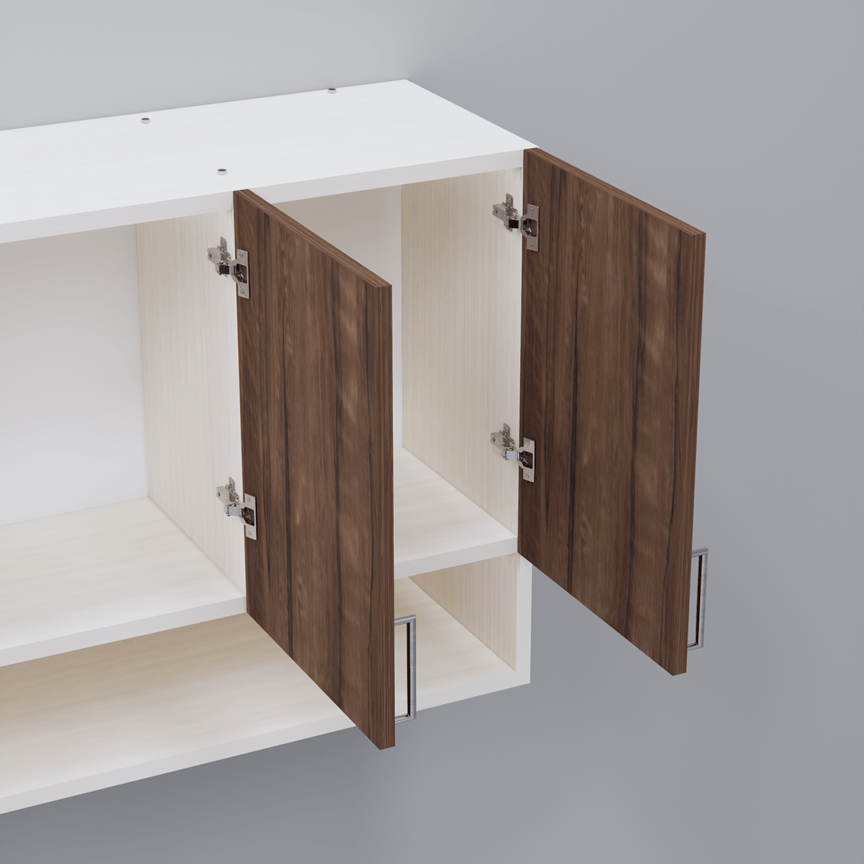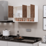 This Coachwood Brown & Highland Pine Matte finish multipurpose storage Cabinet made from Engineered wood. Upgrade your kitchen with this elegant wall-mounted storage cabinet made from eco-friendly European Standard Engineered Wood. Featuring 3 doors, 3 shelves, and an open organizer, it’s perfect for storing spices, containers, and kitchen essentials. Stainless steel handles add a modern touch, while the smart design maximizes space and keeps your items clean, dry, and within easy reach. Ideal for modular kitchens.