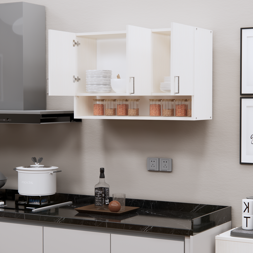 This Highland Pine Matte finish multipurpose storage Cabinet made from Engineered wood. Upgrade your kitchen with this elegant wall-mounted storage cabinet made from eco-friendly European Standard Engineered Wood. Featuring 3 doors, 3 shelves, and an open organizer, it’s perfect for storing spices, containers, and kitchen essentials. Stainless steel handles add a modern touch, while the smart design maximizes space and keeps your items clean, dry, and within easy reach. Ideal for modular kitchens.