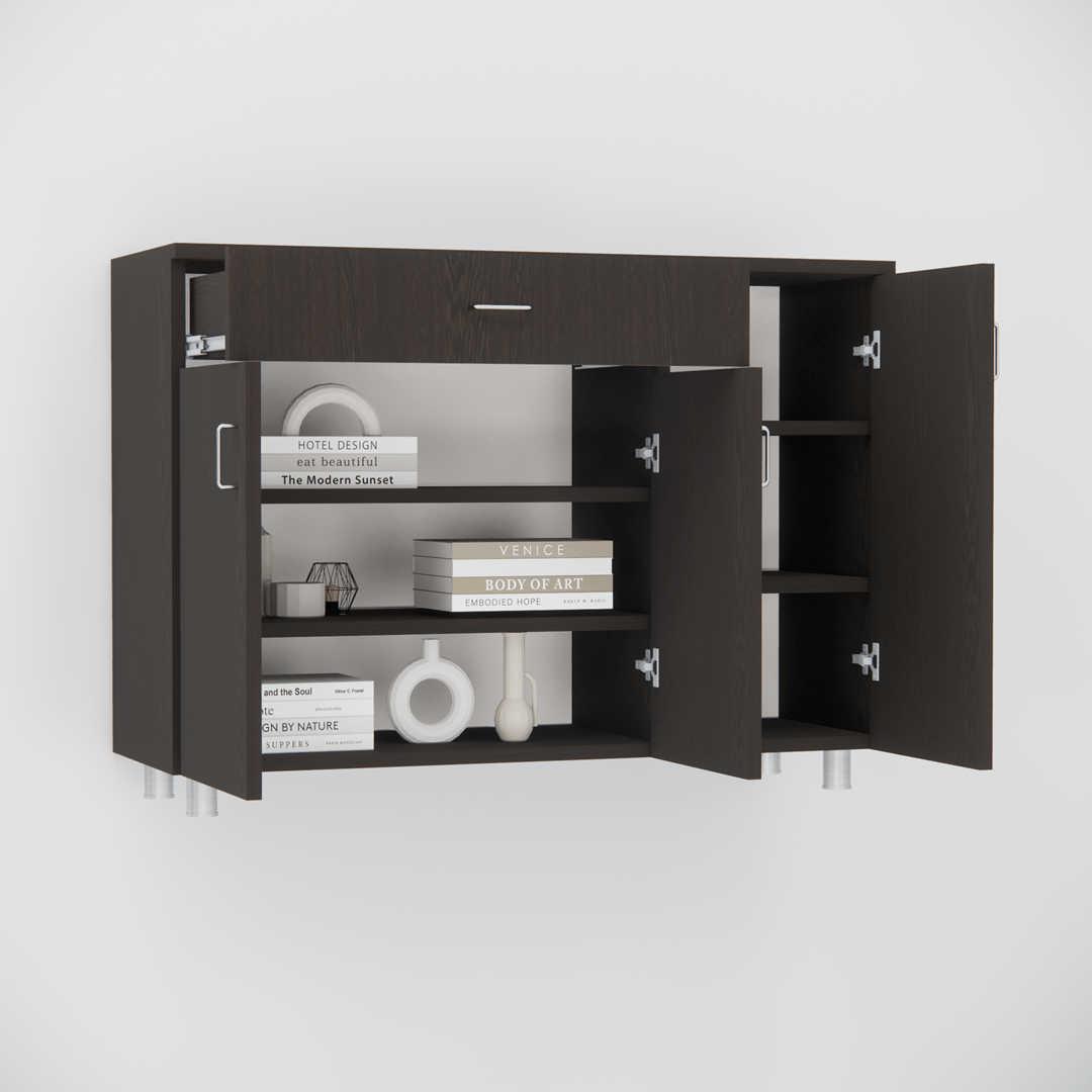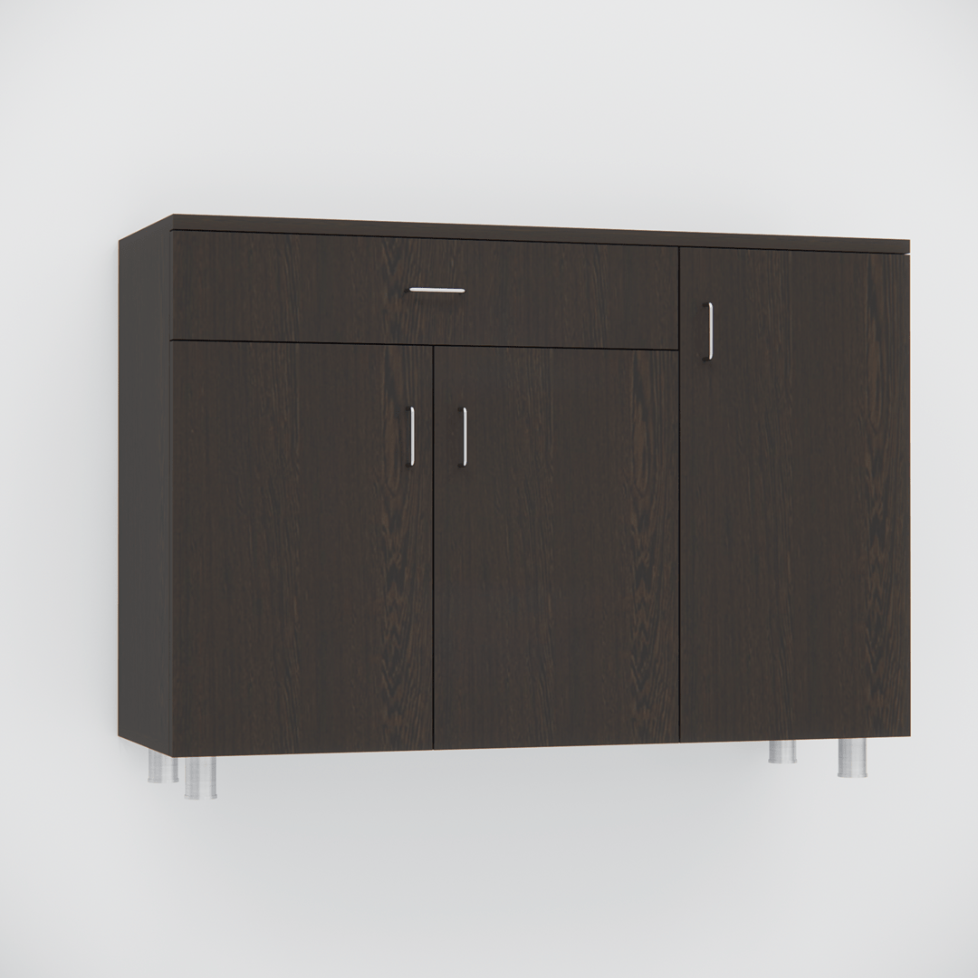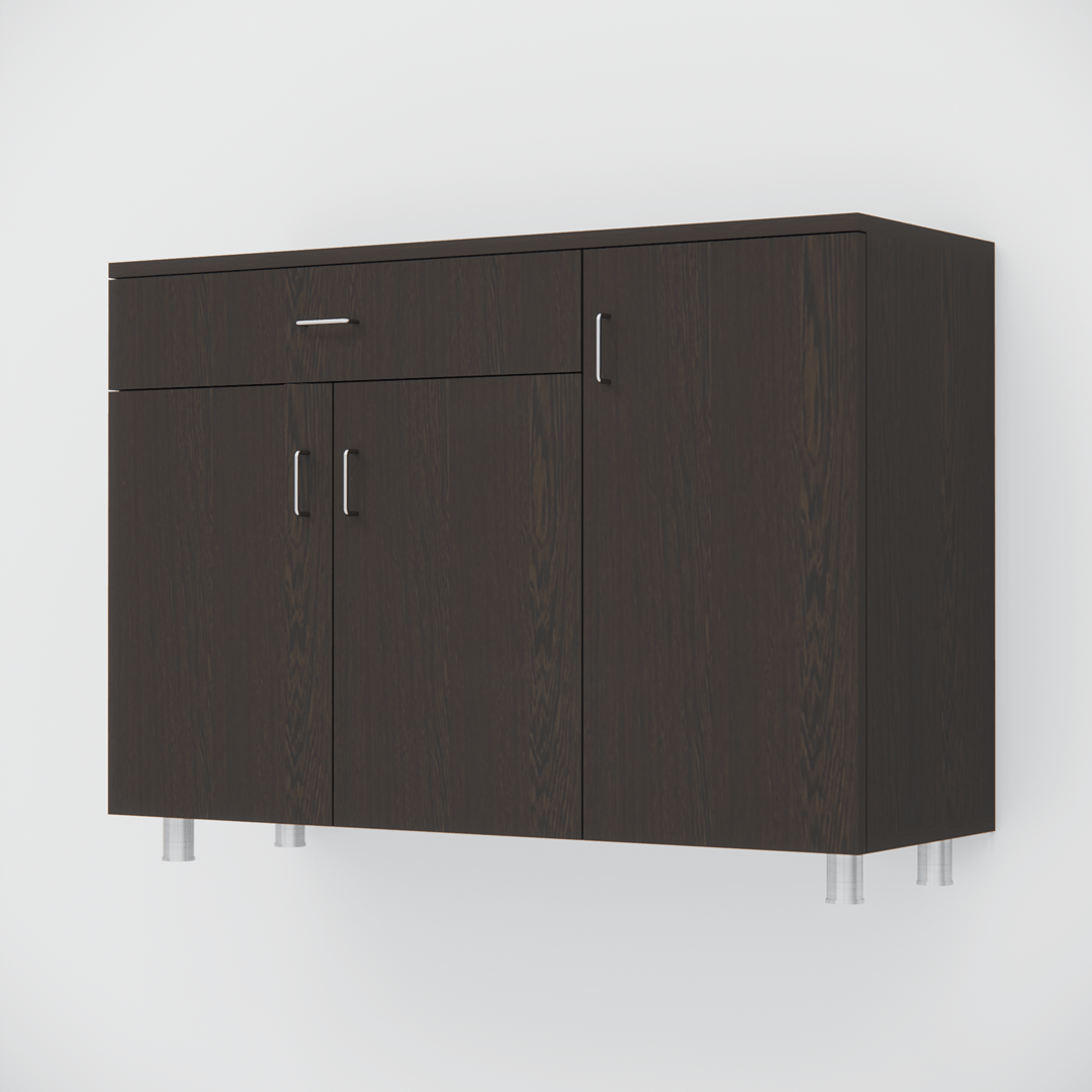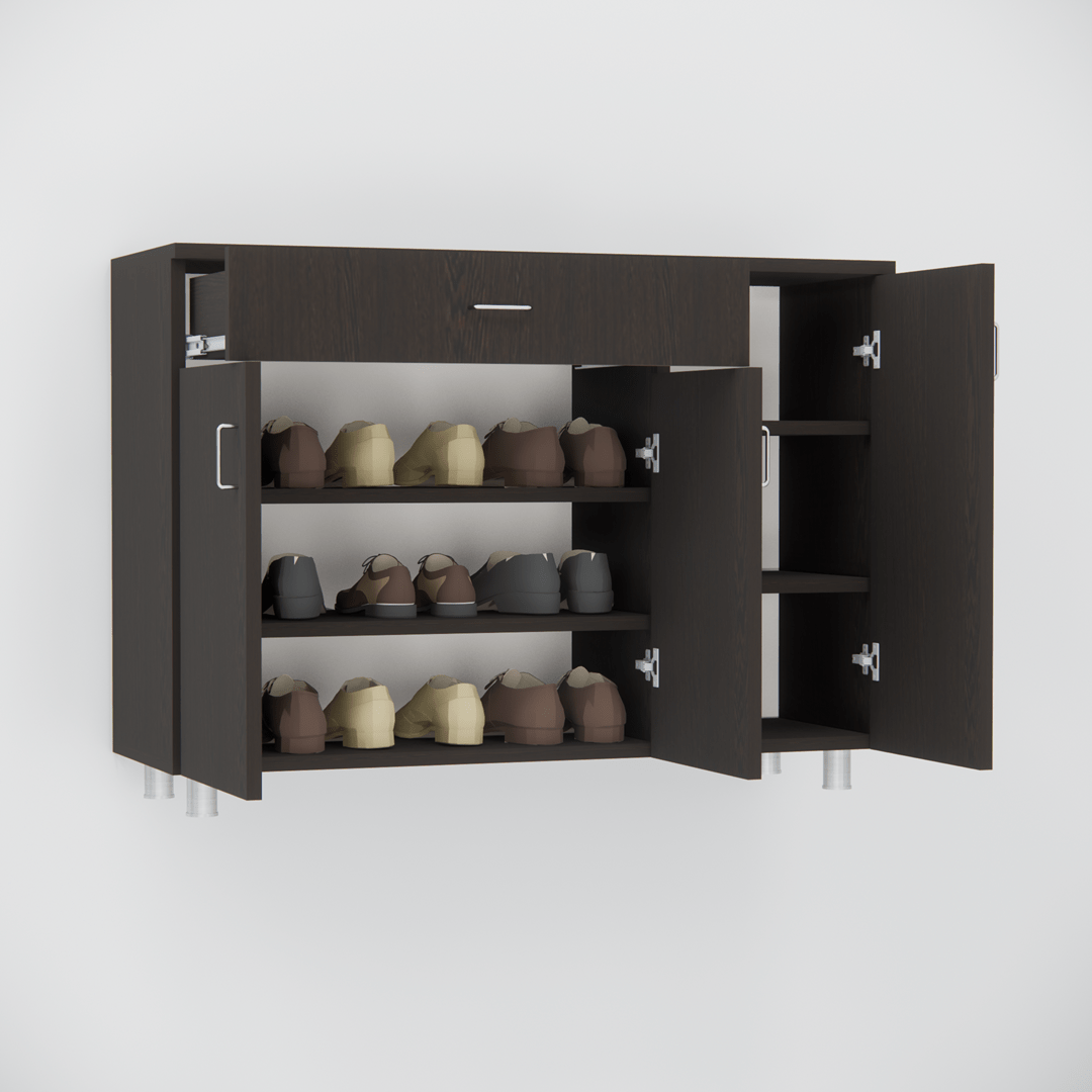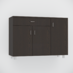 This stylish and functional 3-door shoe cabinet is designed to offer a smart storage solution for your footwear. Made from engineered wood with a sleek PU coating, it ensures durability and a sophisticated, modern look. The Chiyoda Wenge finish complements a variety of interiors, making it suitable for the hallway, closet, or bedroom.wider compartment layout and 7 adjustable shelves to accommodate shoes of all sizes—from boots to sandals, heels, and sneakers. The spacious storage design allows for neat organization, while the three doors keep your shoes concealed and out of sight, maintaining a tidy, clutter-free environment.
