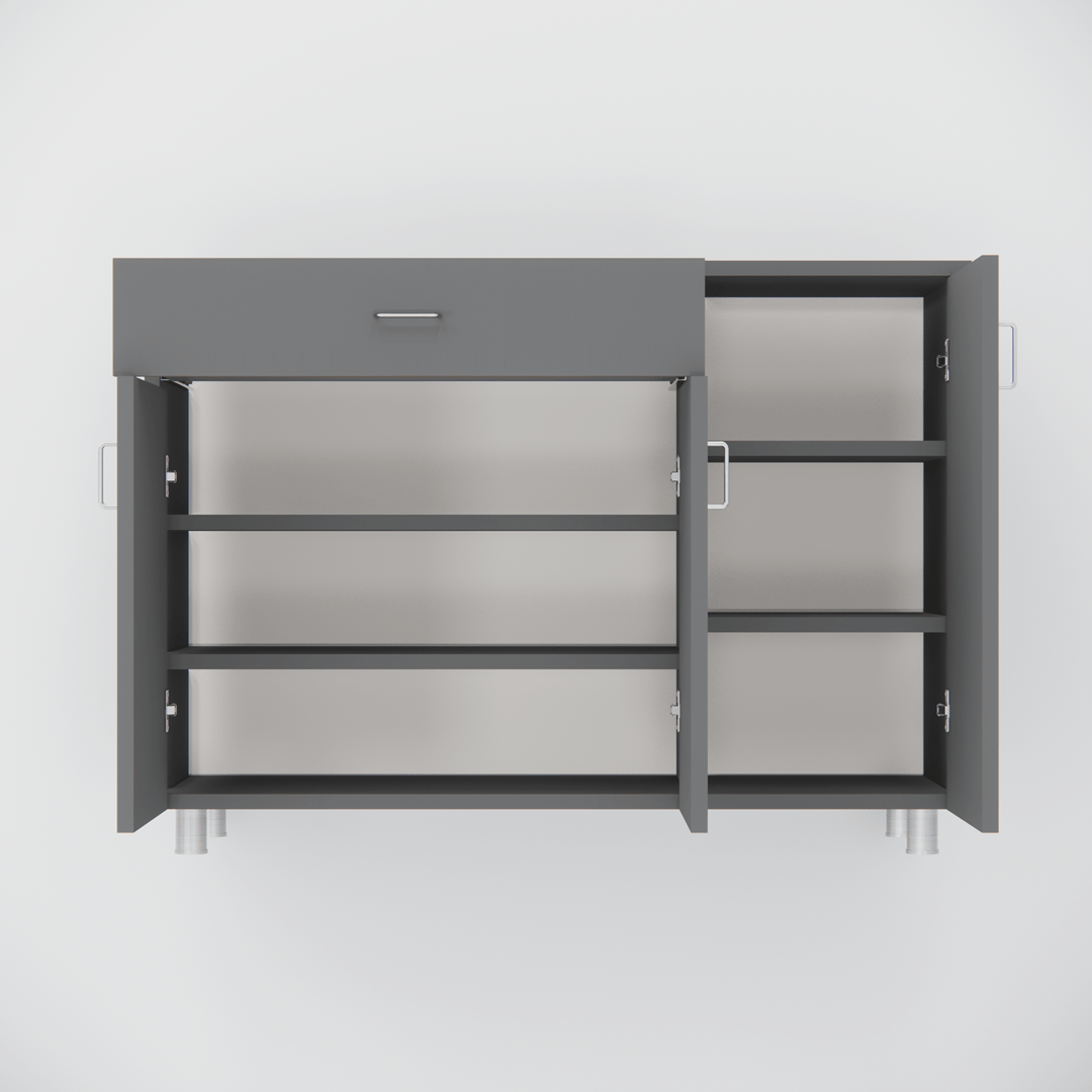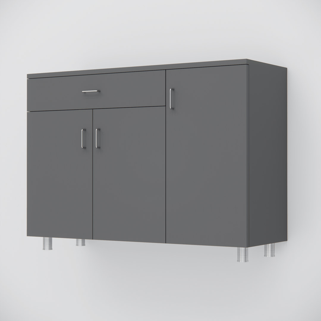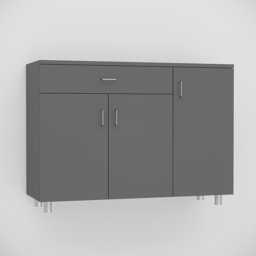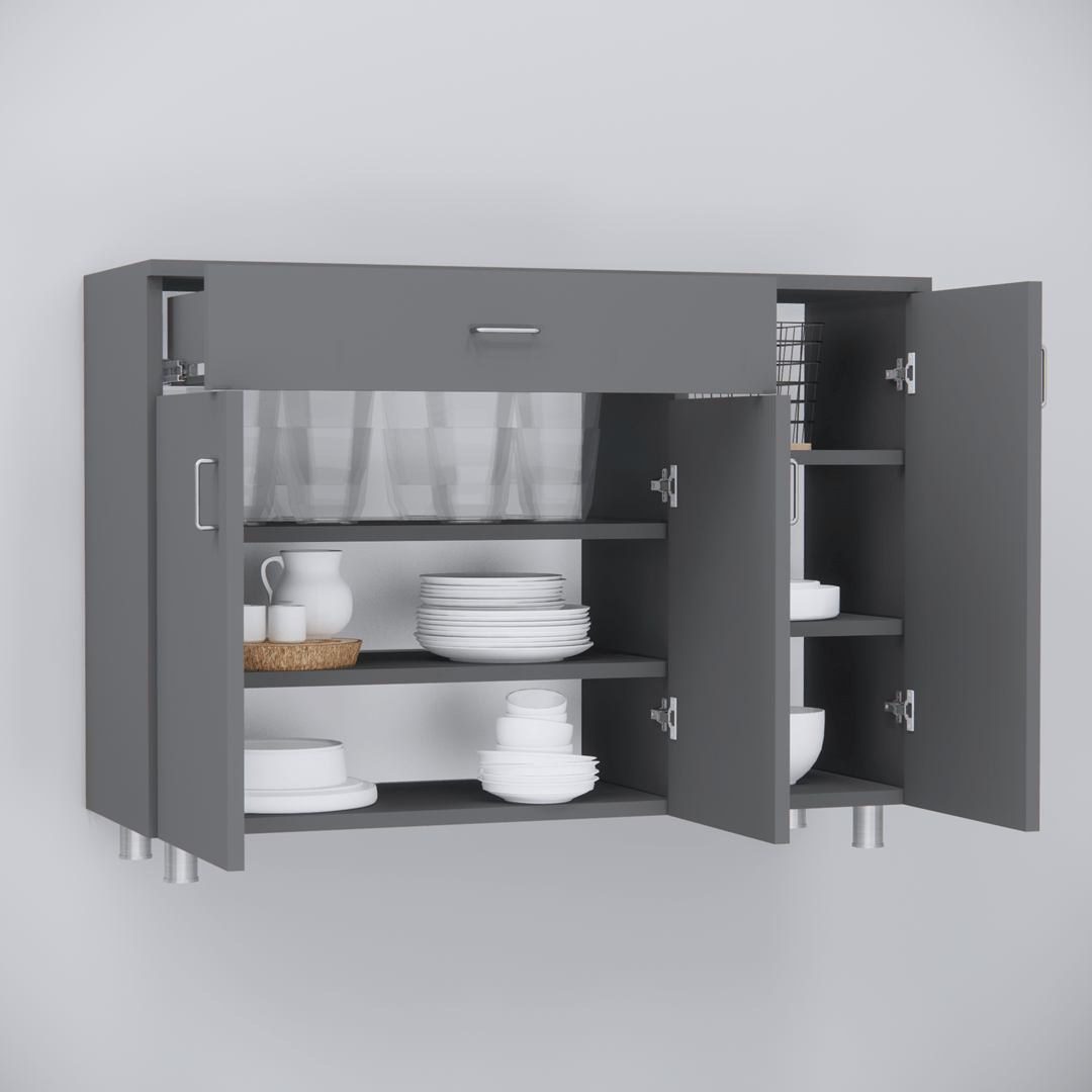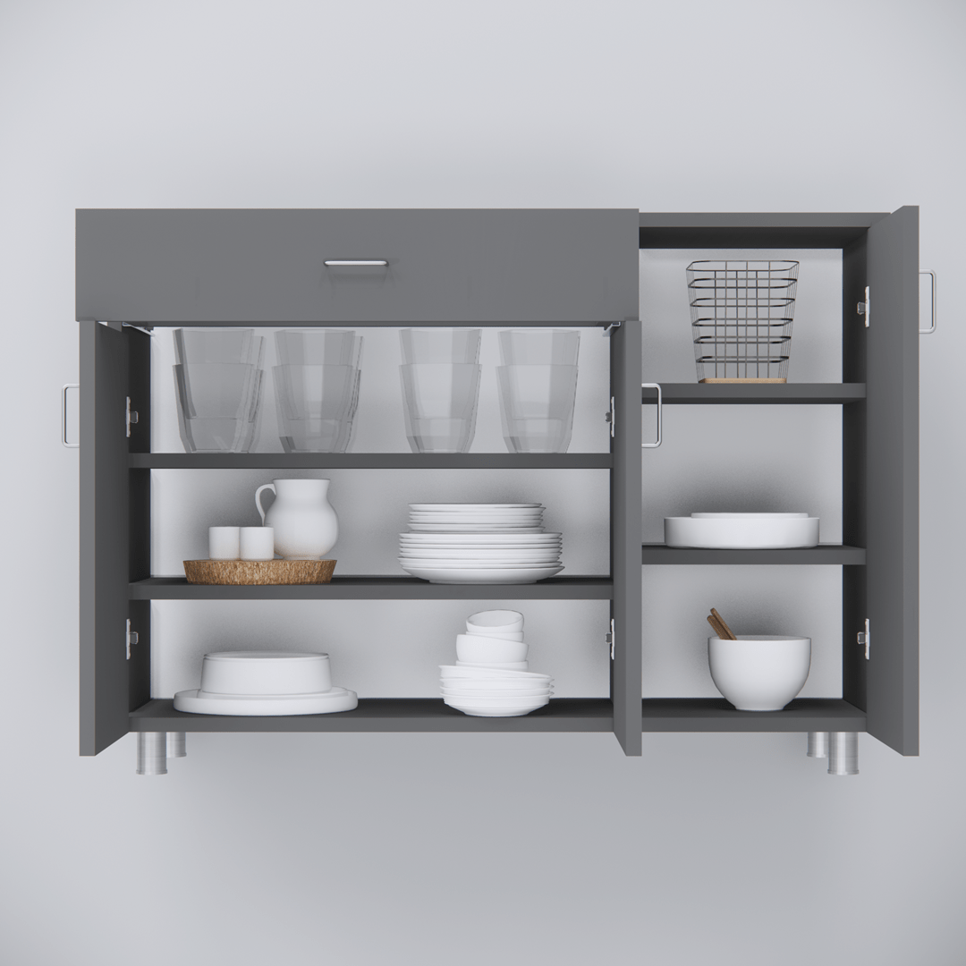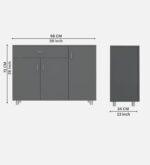 Transform your kitchen into a model of efficiency and style with this sleek 3-Door Slated Grey Finish Storage Cabinet. Crafted from durable engineered wood with a chic PU coating, this cabinet combines elegance and functionality. Its scientific design maximizes space, featuring 7 spacious shelves for all your kitchen essentials—from spice containers and masala boxes to oil cans and storage boxes. With its wide compartments, this cabinet is the ultimate space-saving organizer. Whether it’s your kitchen accessories or everyday necessities, everything has a place. Plus, the secure drawer offers privacy for your most personal items, keeping them clean, dry, and easily accessible. Get ready to elevate your kitchen storage and organization to new heights!
