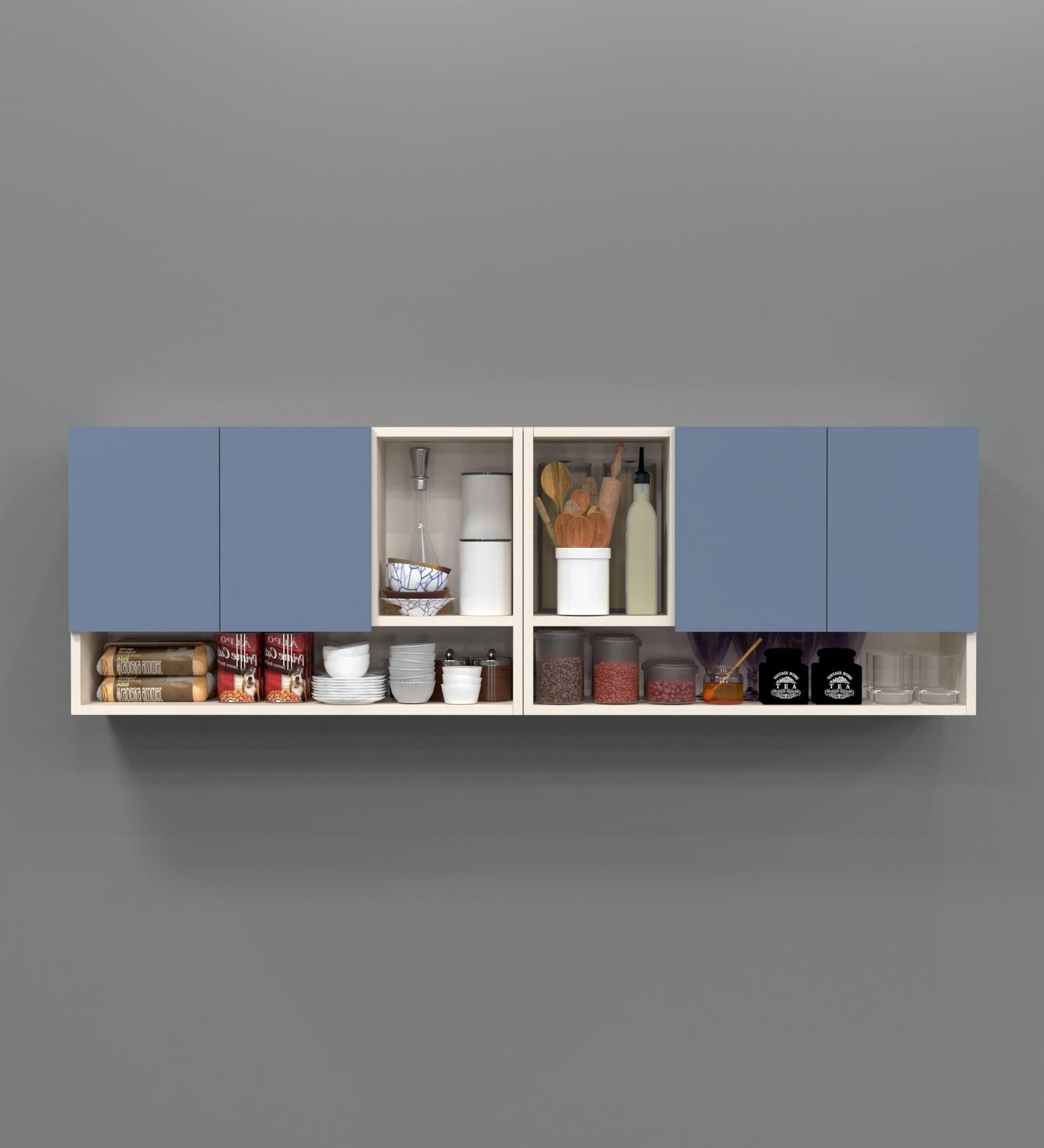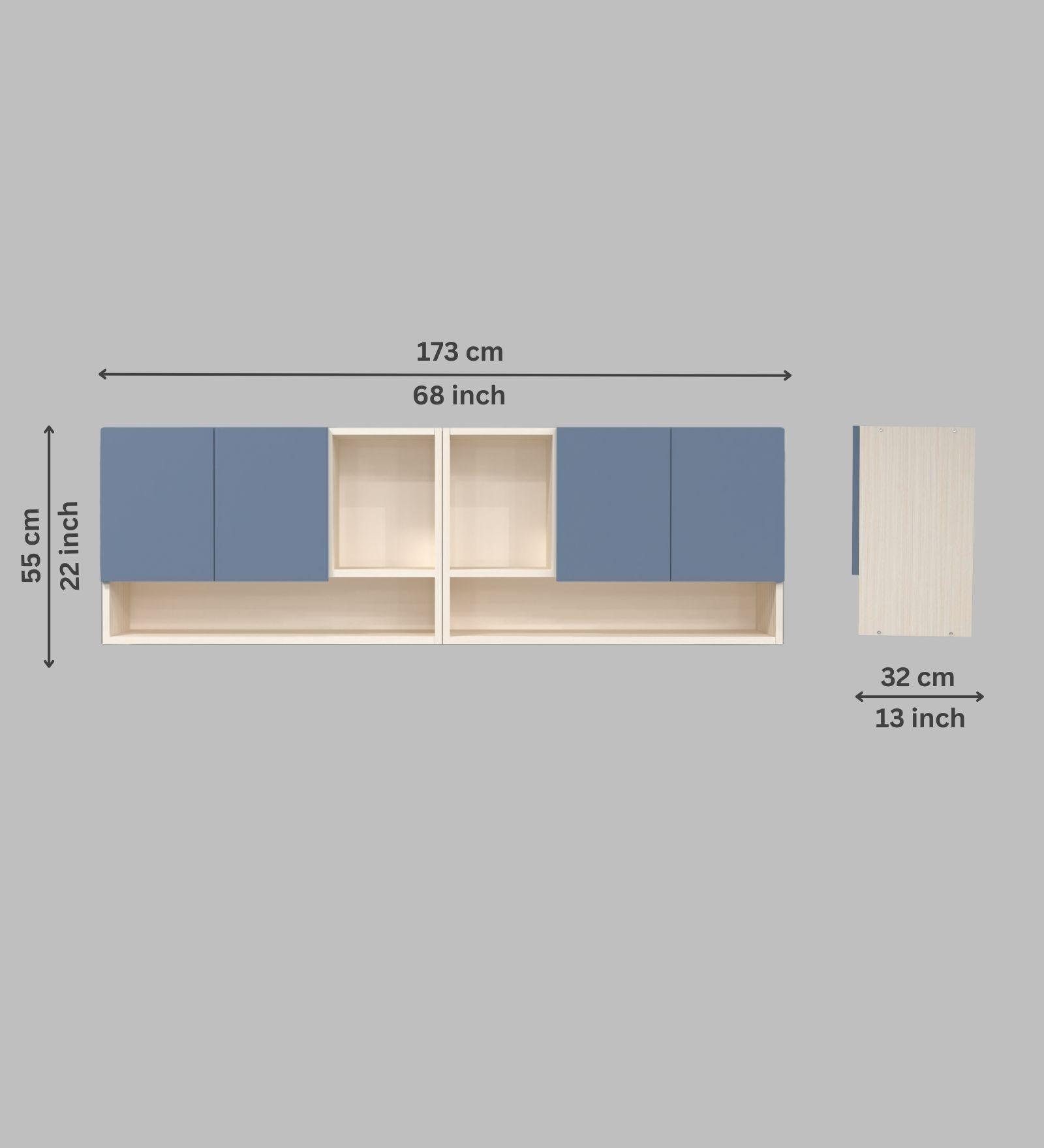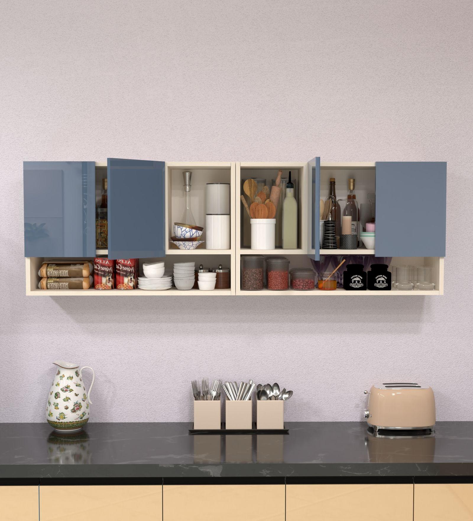 This Blue Berry glossy UV coating finish multipurpose storage Cabinet made from environment friendly European Standard Engineered wood. A UV-coated wall-mounted storage cabinet combines durability, aesthetics, and protection for everyday use. It can be used as a storage cabinet in a modular kitchen. 6 shelves & 4 doors with handless shutters & Open Organizer Shelf can store infrequently used items to maintain your items clean and dry make your space organized and comfortable with French Cleat system distributes the weight of the furniture evenly, making it ideal for heavy pieces. Fixed Shelves to accommodate a variety of items like books, toiletries, or kitchenware. You can store all of your spice containers for kitchen, masala box for kitchen, plastic oil cans, plastic boxes for storage, kitchen containers set, kitchen accessories items for home, container for kitchen storage set, etc. For any product related query please call the Toll free number on the box to get proper solution.