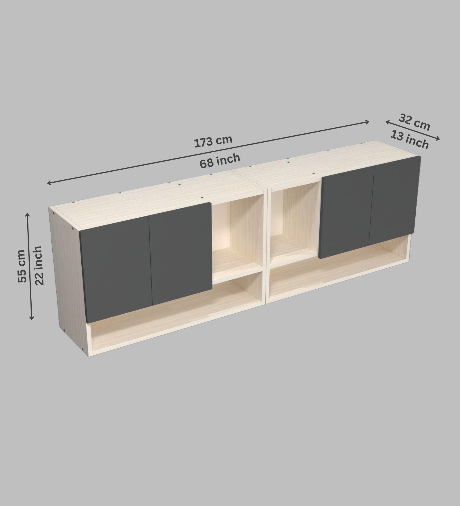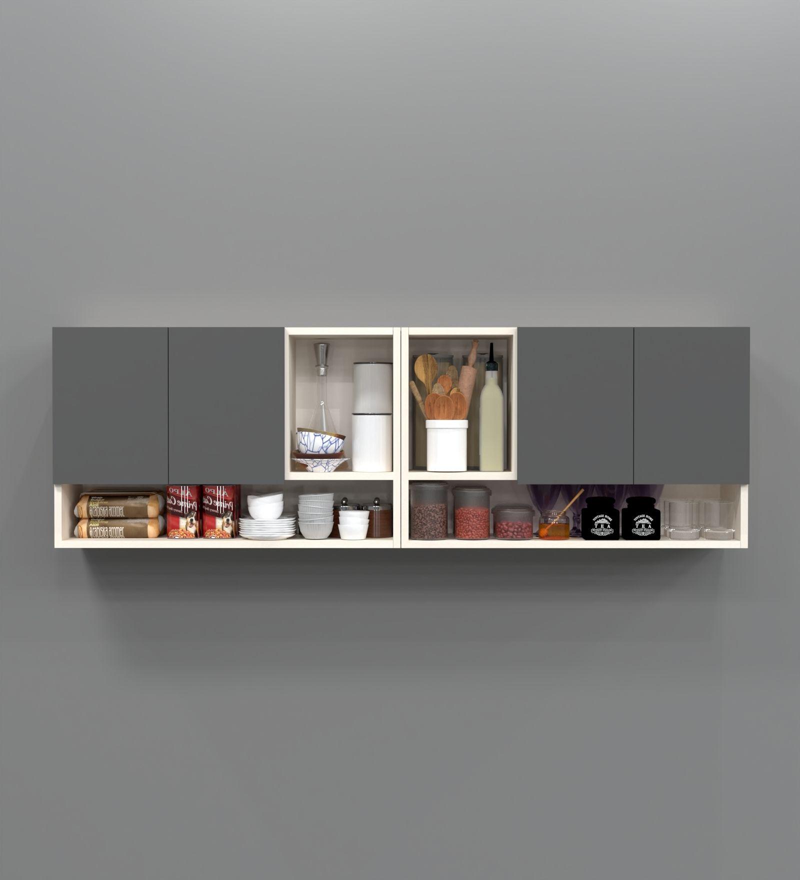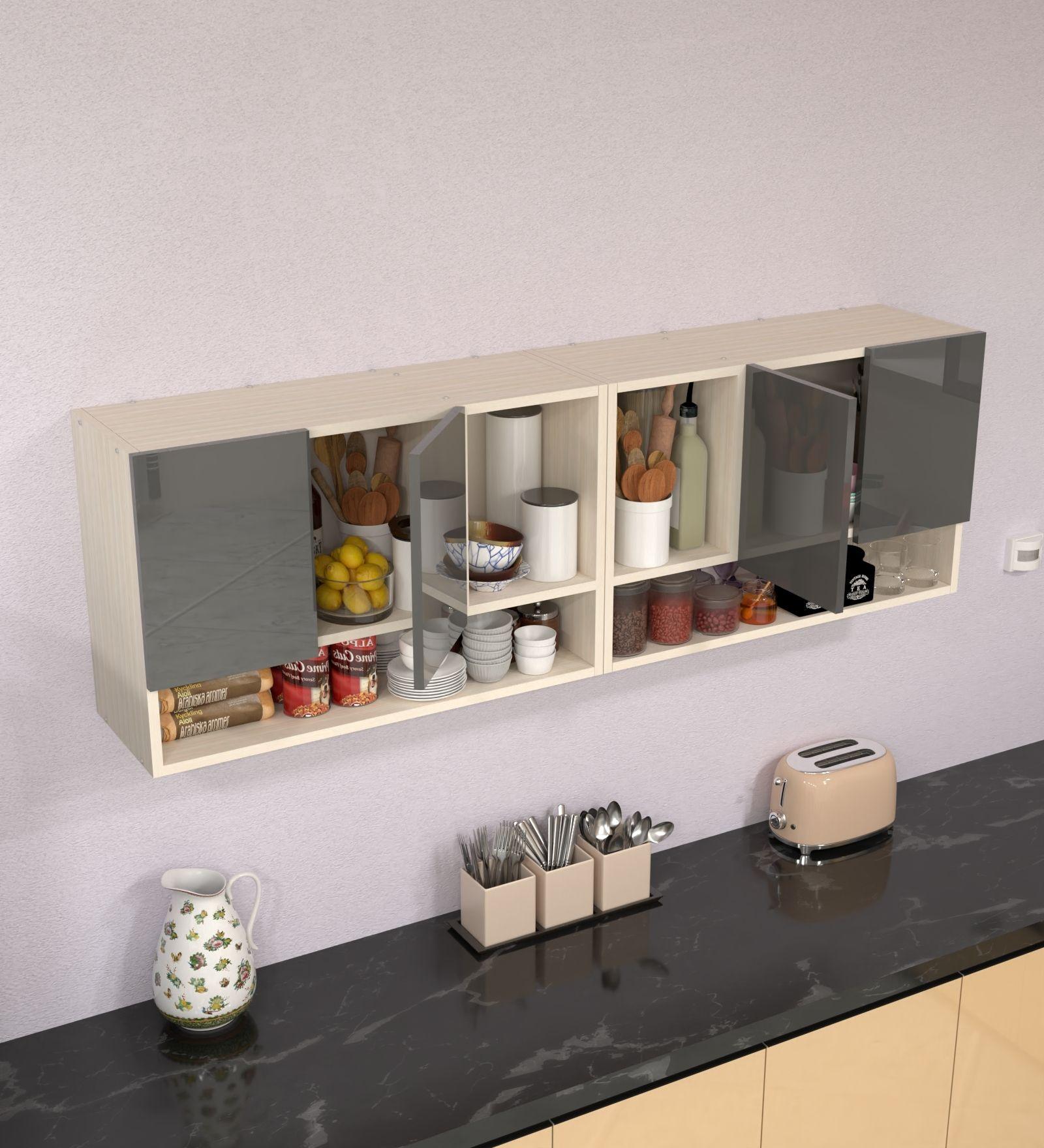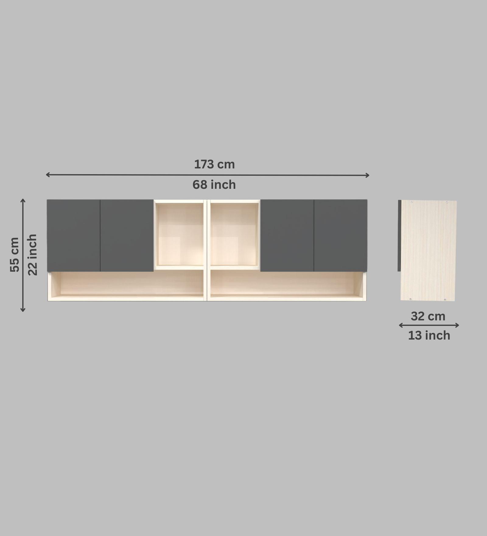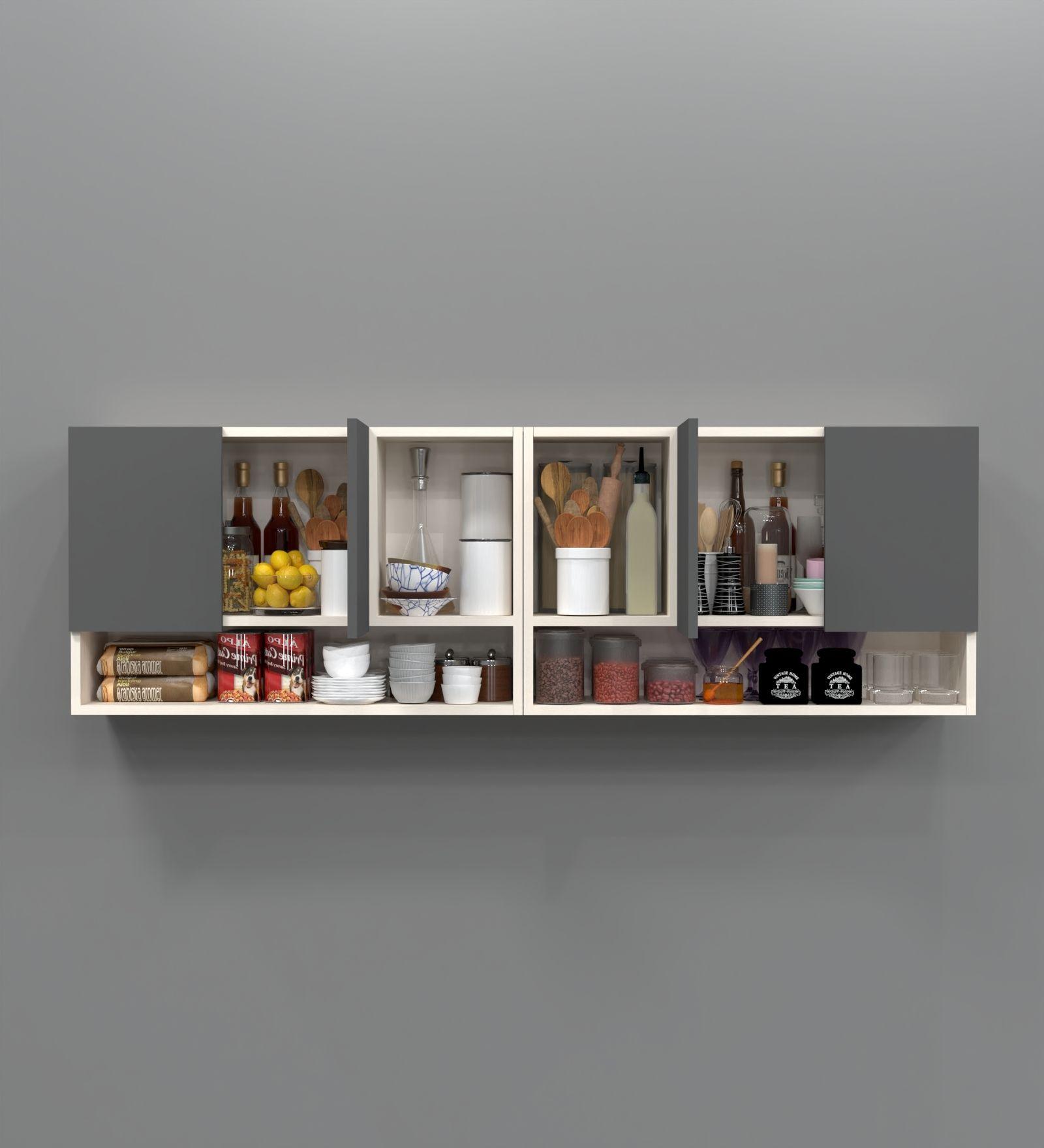 This Grey glossy UV coating finish multipurpose storage Cabinet made from environment friendly European Standard Engineered wood. A UV-coated wall-mounted storage cabinet combines durability, aesthetics, and protection for everyday use. It can be used as a storage cabinet in a modular kitchen. 6 shelves & 4 doors with handless shutters & Open Organizer Shelf can store infrequently used items to maintain your items clean and dry make your space organized and comfortable with French Cleat system distributes the weight of the furniture evenly, making it ideal for heavy pieces. Fixed Shelves to accommodate a variety of items like books, toiletries, or kitchenware. You can store all of your spice containers for kitchen, masala box for kitchen, plastic oil cans, plastic boxes for storage, kitchen containers set, kitchen accessories items for home, container for kitchen storage set, etc. For any product related query please call the Toll free number on the box to get proper solution.