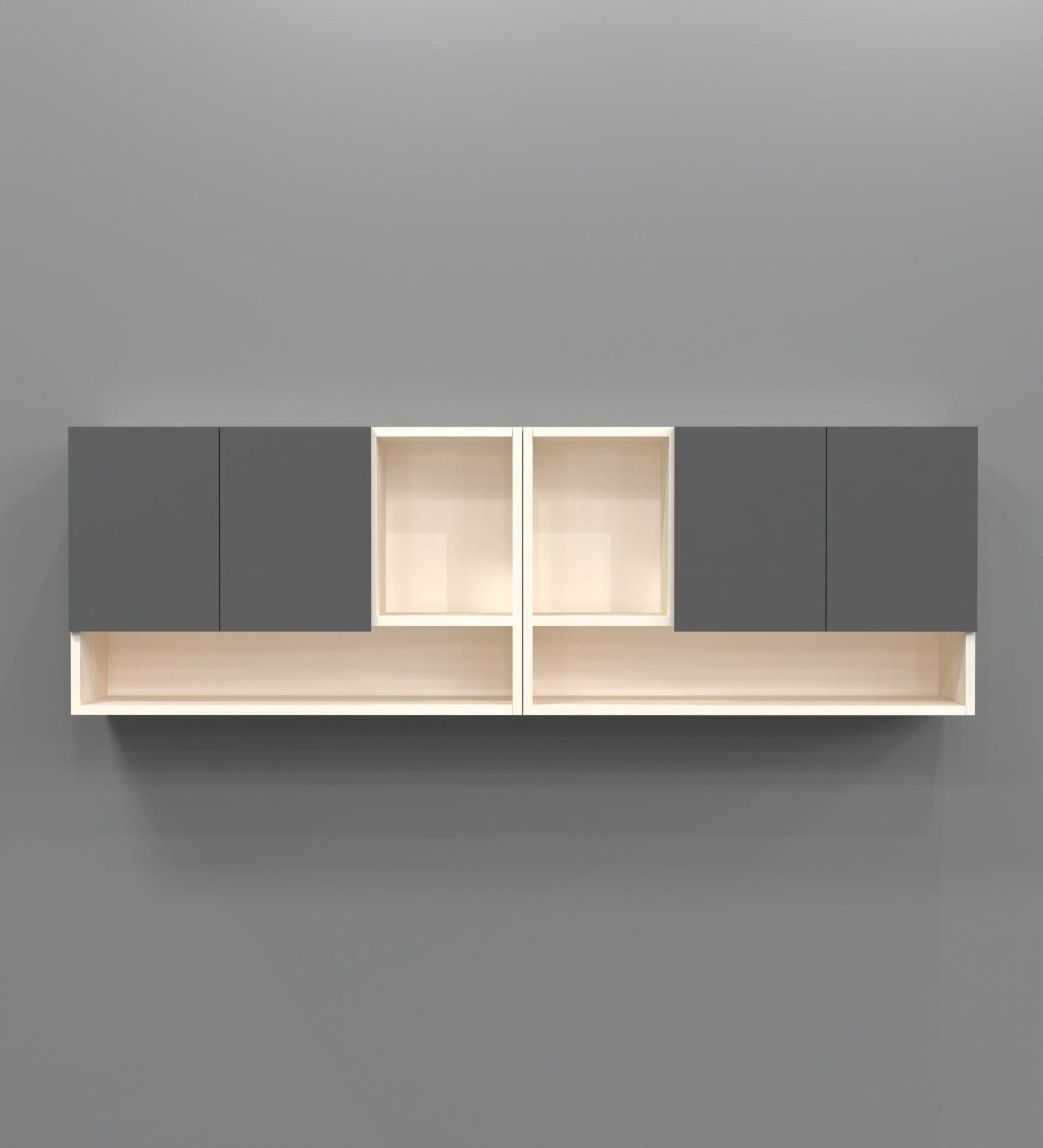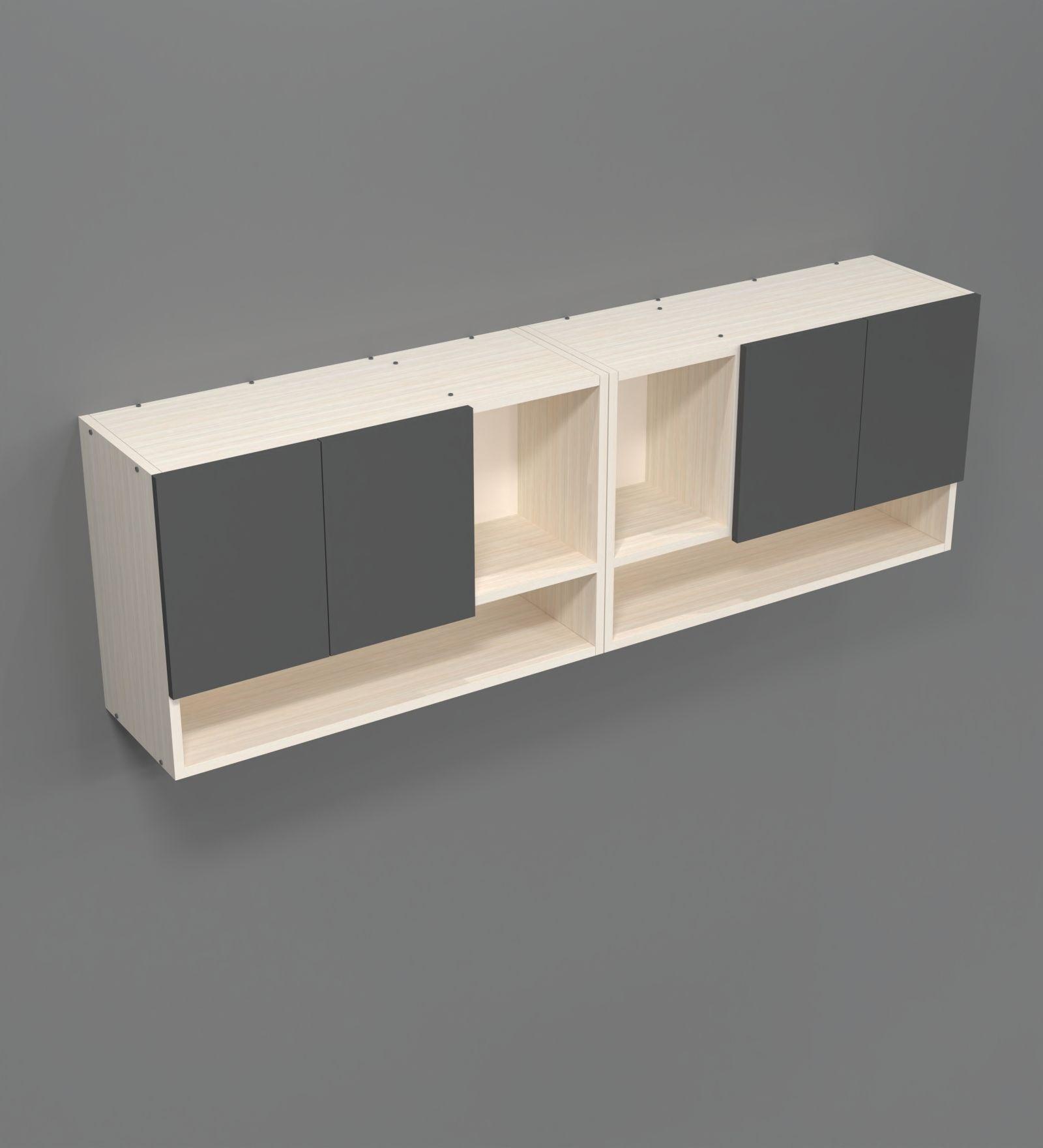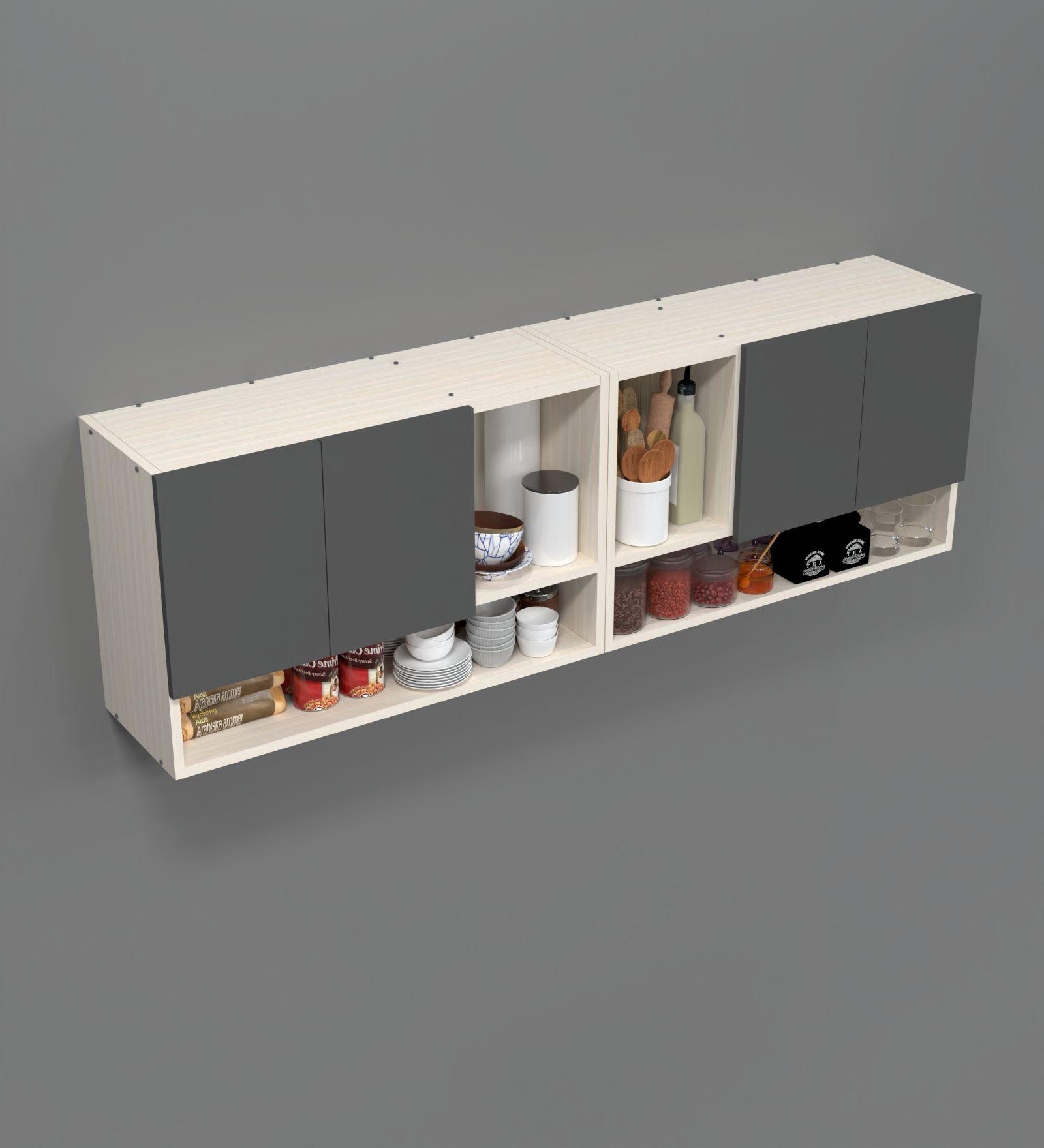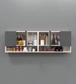 Wall mounted modular kitchen cabinet having 6 shevles & 4 handless glossy UV coating Shutter & Open Organizer Shelf looks beautiful. French Cleat system distributes the weight of the furniture evenly, making it ideal for heavy pieces