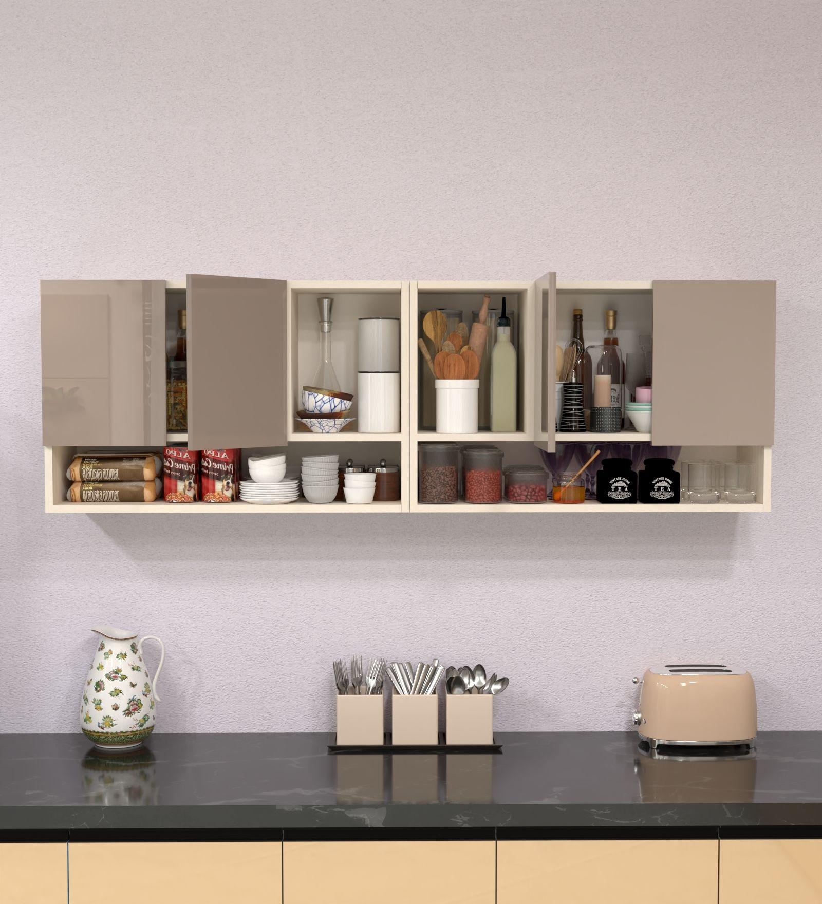 This Mocha UV coating finish multipurpose storage Cabinet made from environment friendly European Standard Engineered wood. A UV-coated wall-mounted storage cabinet combines durability, aesthetics, and protection for everyday use. It can be used as a storage cabinet in a modular kitchen. 6 shelves & 4 doors with handless shutters & Open Organizer Shelf can store infrequently used items to maintain your items clean and dry make your space organized and comfortable with French Cleat system distributes the weight of the furniture evenly, making it ideal for heavy pieces. Fixed Shelves to accommodate a variety of items like books, toiletries, or kitchenware. You can store all of your spice containers for kitchen, masala box for kitchen, plastic oil cans, plastic boxes for storage, kitchen containers set, kitchen accessories items for home, container for kitchen storage set, etc. For any product related query please call the Toll free number on the box to get proper solution.