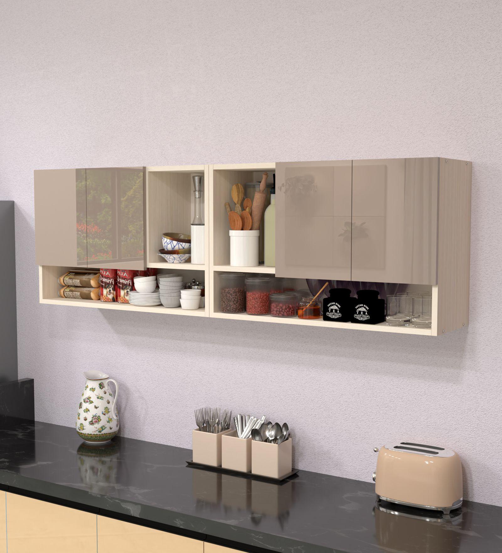 This Mocha glossy UV coating finish multipurpose storage Cabinet made from environment friendly European Standard Engineered wood. A UV-coated wall-mounted storage cabinet combines durability, aesthetics, and protection for everyday use. It can be used as a storage cabinet in a modular kitchen. 6 shelves & 4 doors with handless shutters can store infrequently used items to maintain your items clean and dry make your space organized and comfortable with French Cleat system distributes the weight of the furniture evenly, making it ideal for heavy pieces. Shelves adjustable to accommodate a variety of items like books, toiletries, or kitchenware. You can store all of your spice containers for kitchen, masala box for kitchen, plastic oil cans, plastic boxes for storage, kitchen containers set, kitchen accessories items for home, container for kitchen storage set, etc. For any product related query please call the Toll free number on the box to get proper solution.