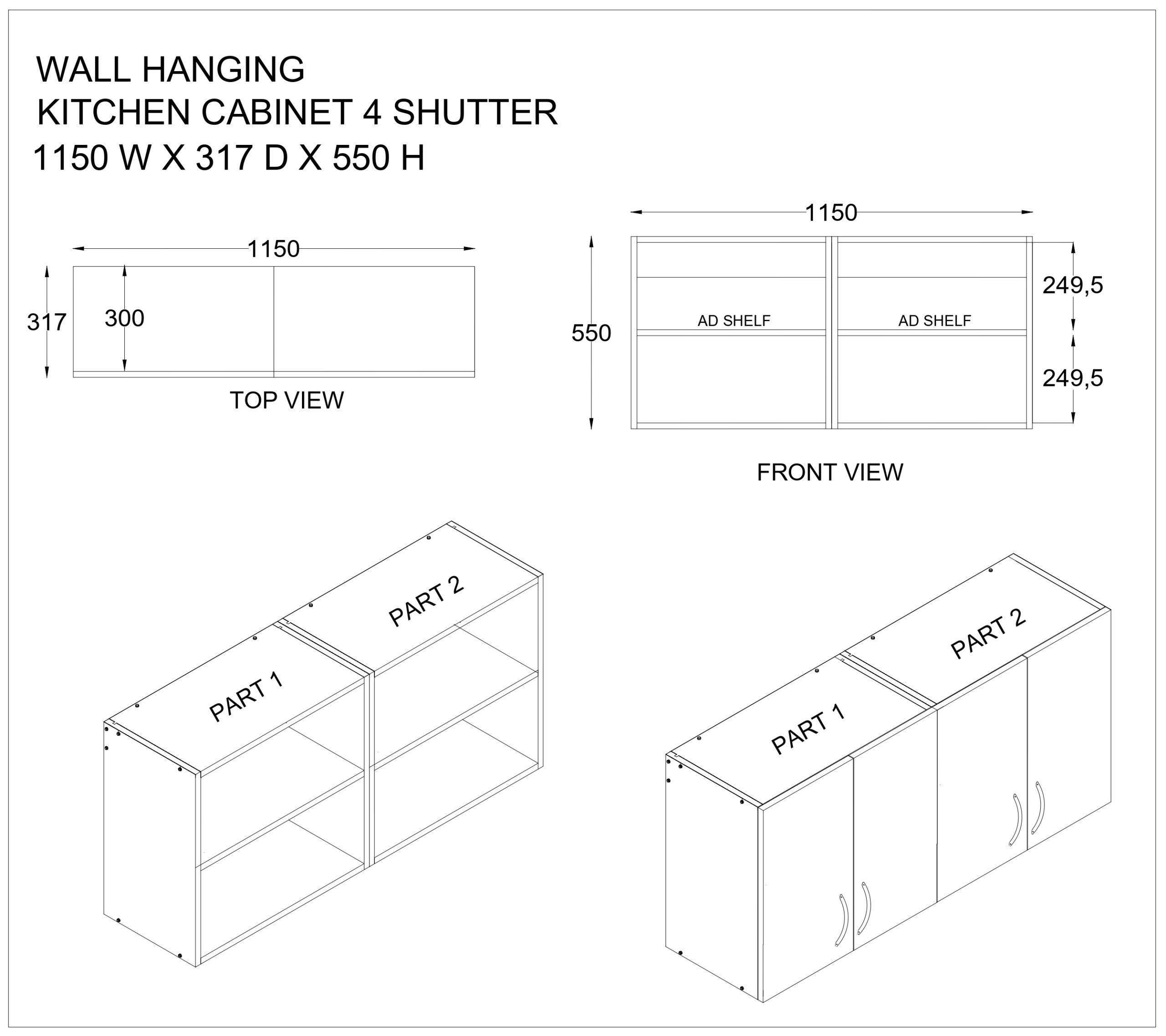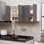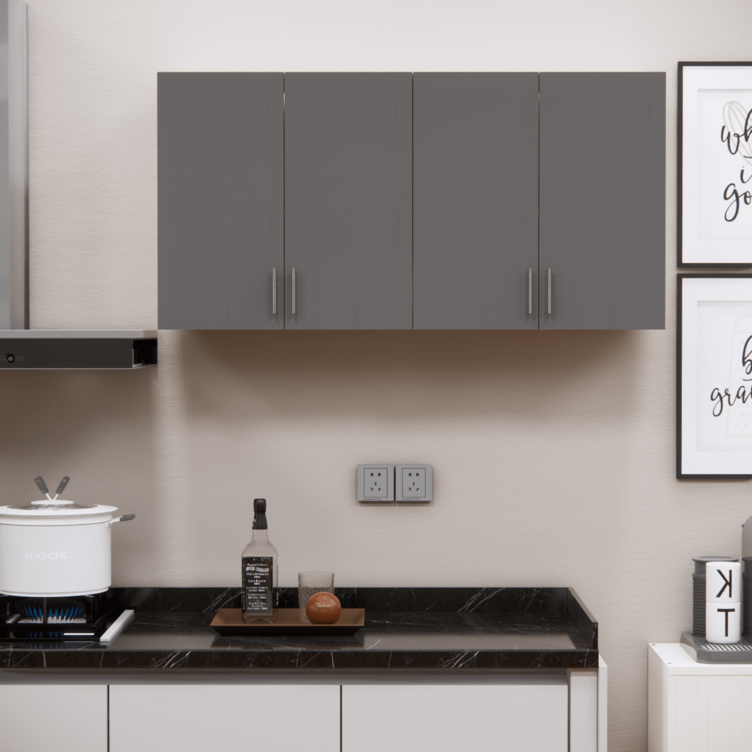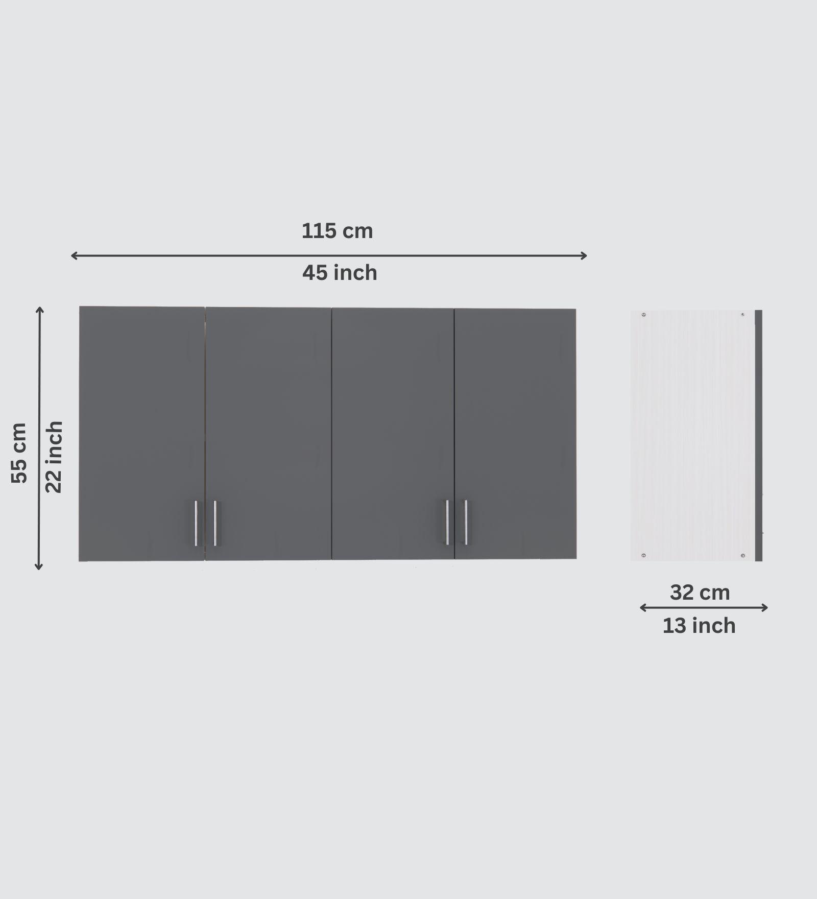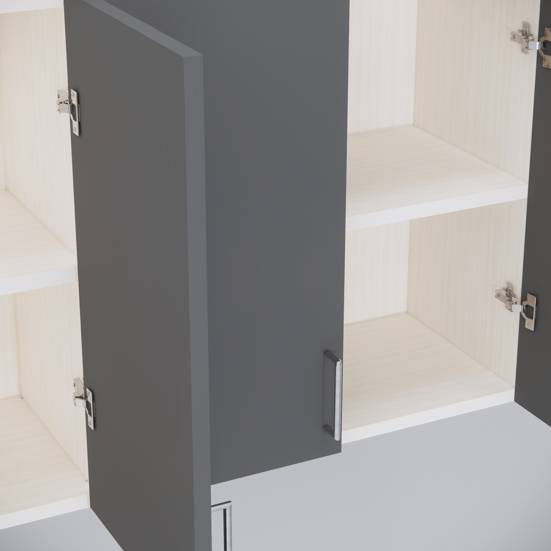 This Slated Grey & Highland Pine Matte finish multipurpose storage Cabinet made from Engineered wood. Upgrade your kitchen or home with this sleek wall-mounted storage cabinet made from high-quality engineered wood. Designed with 4 spacious shelves and 4 doors featuring elegant silver aluminum handles, it’s perfect for organizing kitchen essentials, books, files, and more. The matte apple finish adds a modern touch, while the wide compartments maximize storage space for containers, spices, and accessories. Ideal for modular kitchens, studies, or offices — keep your space clean, organized, and stylish.