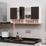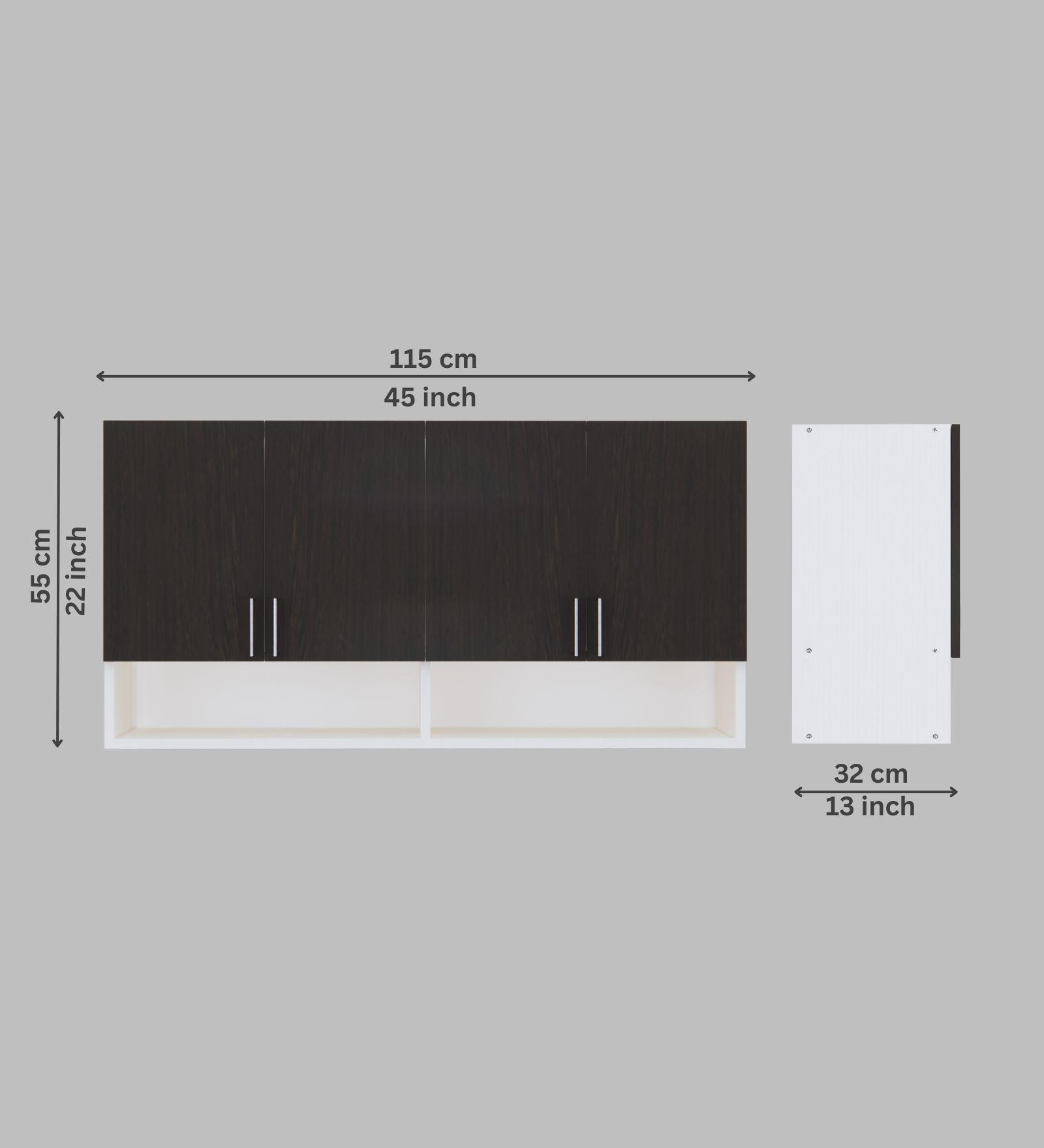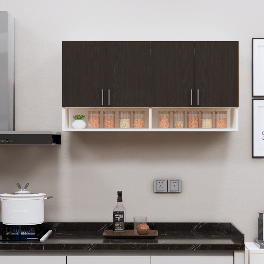 This Chiyoda Wenge & Highland Pine Matte finish multipurpose storage Cabinet made from Engineered wood. Upgrade your kitchen with this elegant wall-mounted storage cabinet made from eco-friendly European Standard Engineered Wood. Featuring 4 doors, 4 shelves, and an open organizer, it’s perfect for storing spices, containers, and kitchen essentials. Stainless steel handles add a modern touch, while the smart design maximizes space and keeps your items clean, dry, and within easy reach. Ideal for modular kitchens.