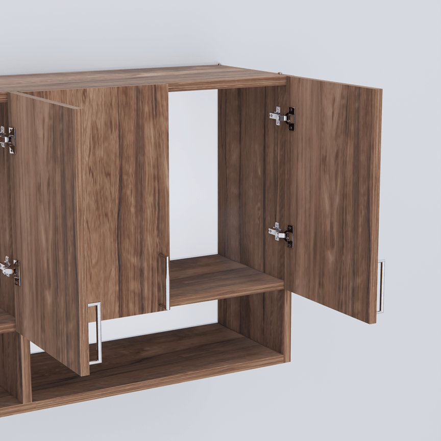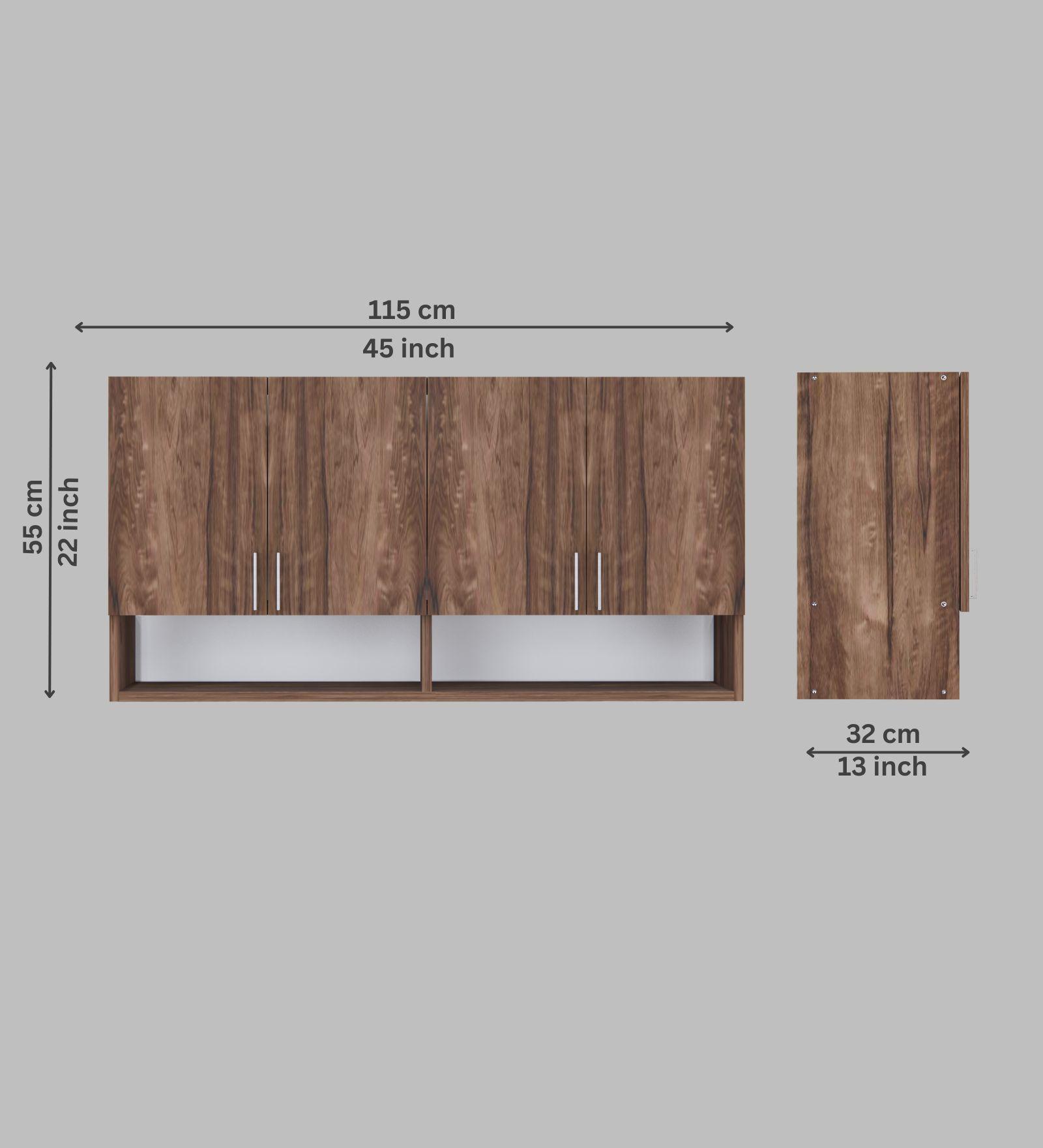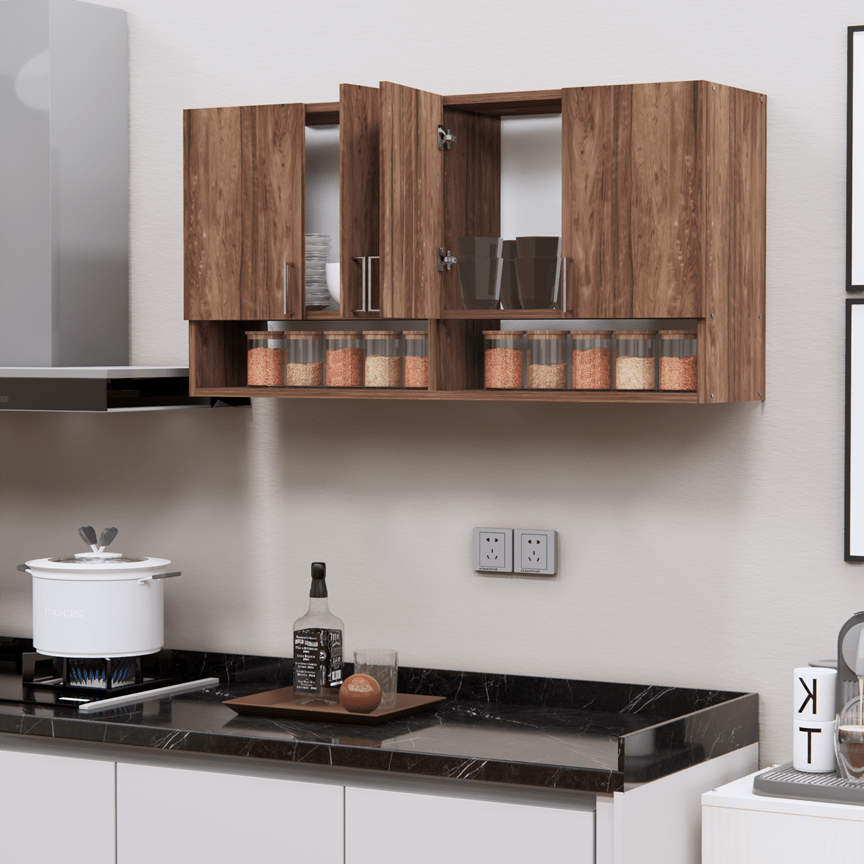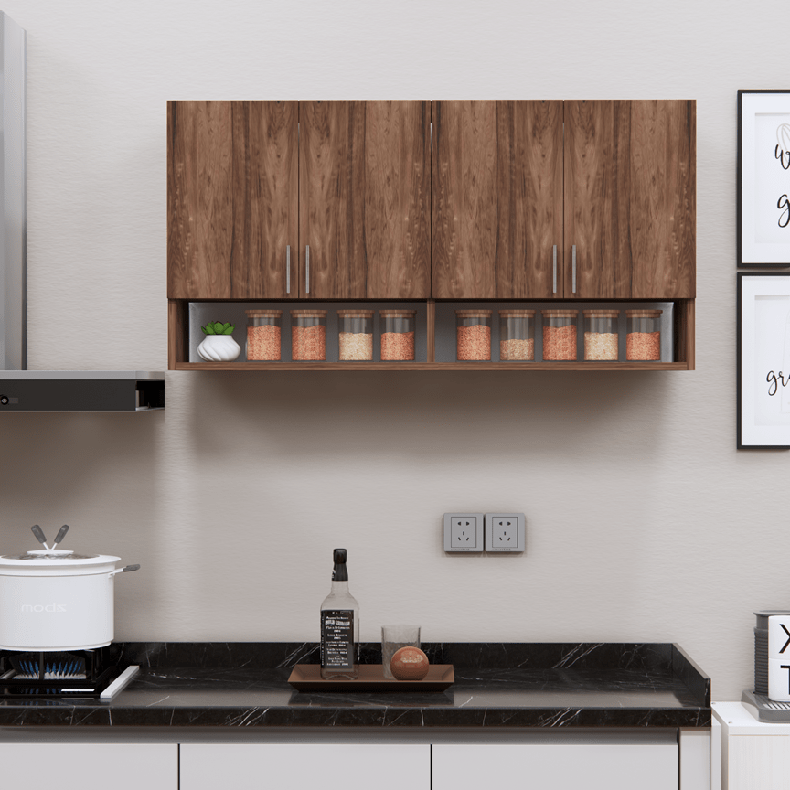 This Coachwood Brown Matte finish multipurpose storage Cabinet made from Engineered wood. Upgrade your kitchen with this elegant wall-mounted storage cabinet made from eco-friendly European Standard Engineered Wood. Featuring 4 doors, 4 shelves, and an open organizer, it’s perfect for storing spices, containers, and kitchen essentials. Stainless steel handles add a modern touch, while the smart design maximizes space and keeps your items clean, dry, and within easy reach. Ideal for modular kitchens.