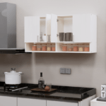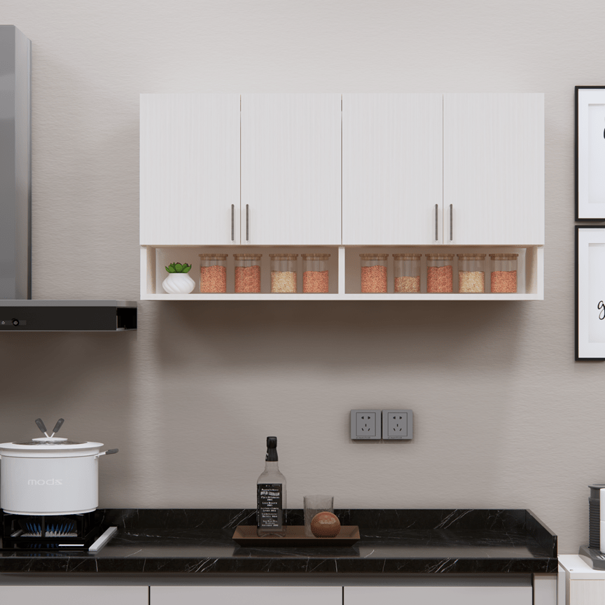 This Highland Pine Matte finish multipurpose storage Cabinet made from Engineered wood. Upgrade your kitchen with this elegant wall-mounted storage cabinet made from eco-friendly European Standard Engineered Wood. Featuring 4 doors, 4 shelves, and an open organizer, it’s perfect for storing spices, containers, and kitchen essentials. Stainless steel handles add a modern touch, while the smart design maximizes space and keeps your items clean, dry, and within easy reach. Ideal for modular kitchens.