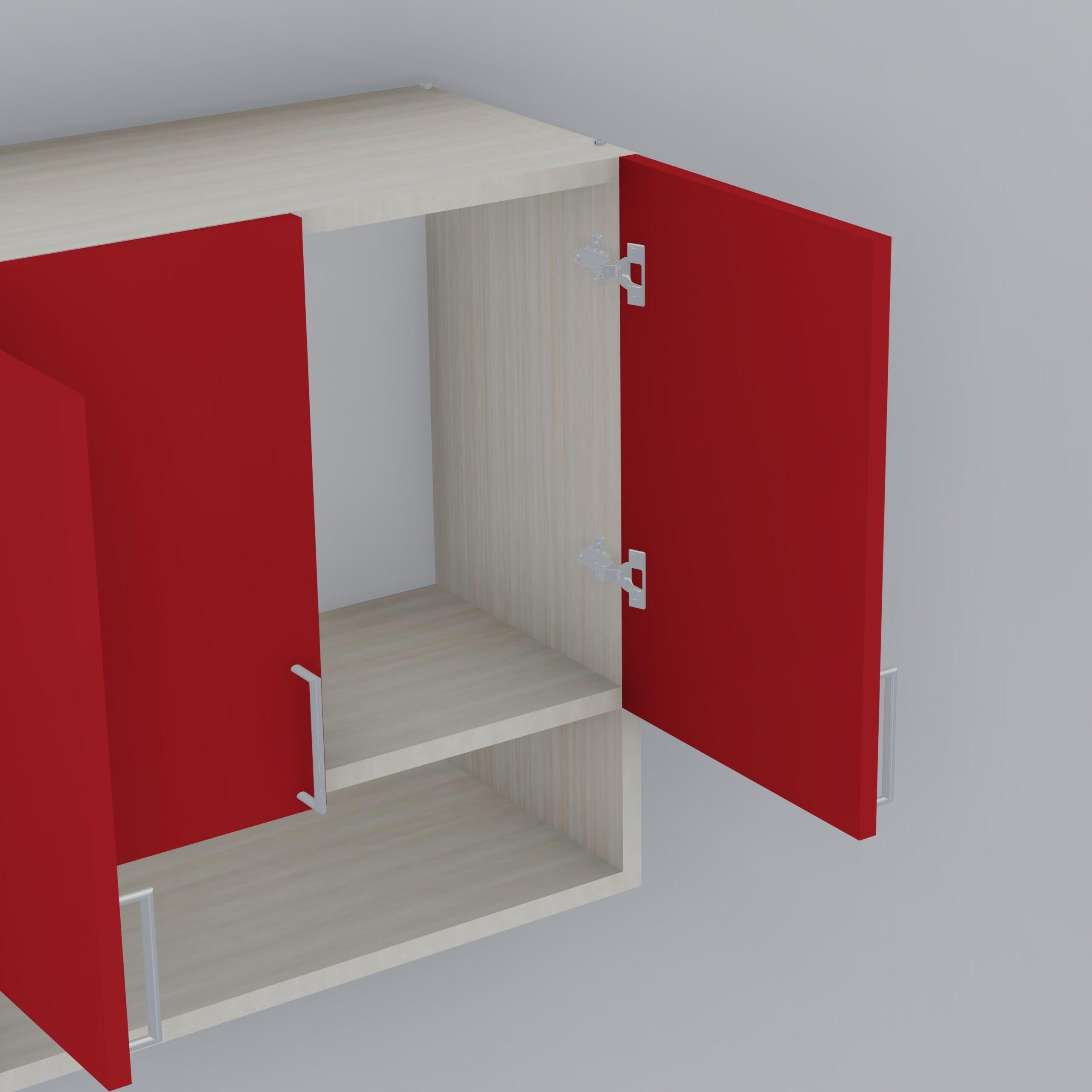 This Scarlet Red & Highland Pine Matte finish multipurpose storage Cabinet made from Engineered wood. Upgrade your kitchen with this elegant wall-mounted storage cabinet made from eco-friendly European Standard Engineered Wood. Featuring 4 doors, 4 shelves, and an open organizer, it’s perfect for storing spices, containers, and kitchen essentials. Stainless steel handles add a modern touch, while the smart design maximizes space and keeps your items clean, dry, and within easy reach. Ideal for modular kitchens.