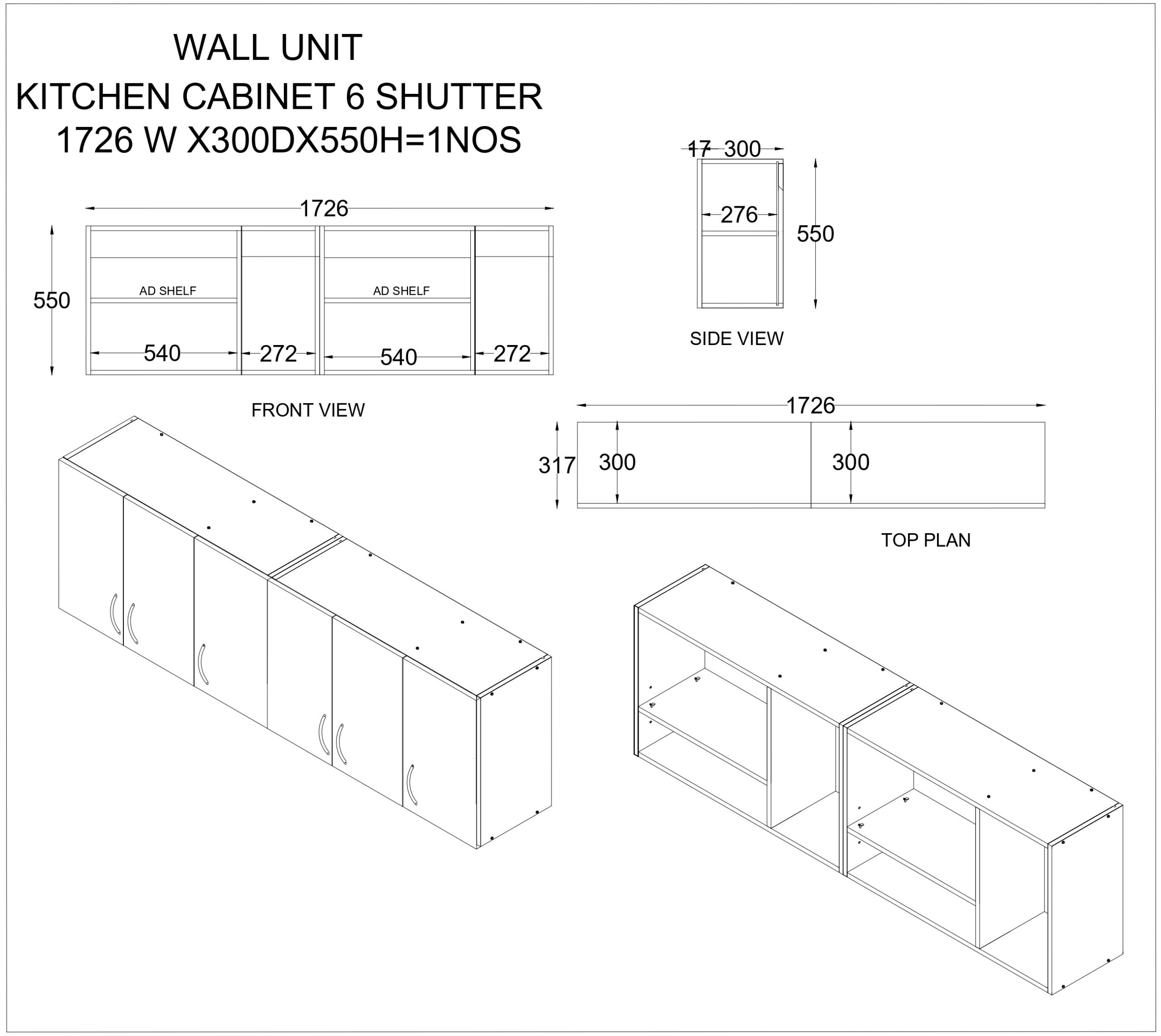| In Box | 1 wall cabinet, Hardware Kit, AGL Plan |