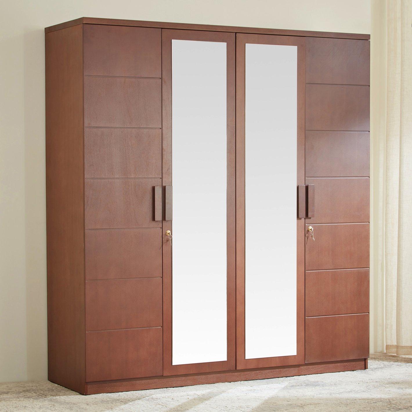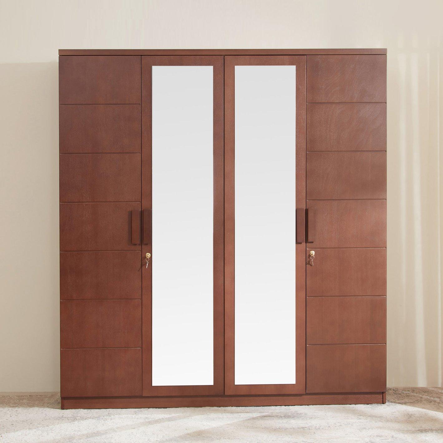Luxe 215cm White & Gold 4-Door Wardrobe with Dual Mirrors, Fluted Panel Detailing, and Quad-Lock Security Original price was: ₹84,999.00.Current price is: ₹76,499.00.