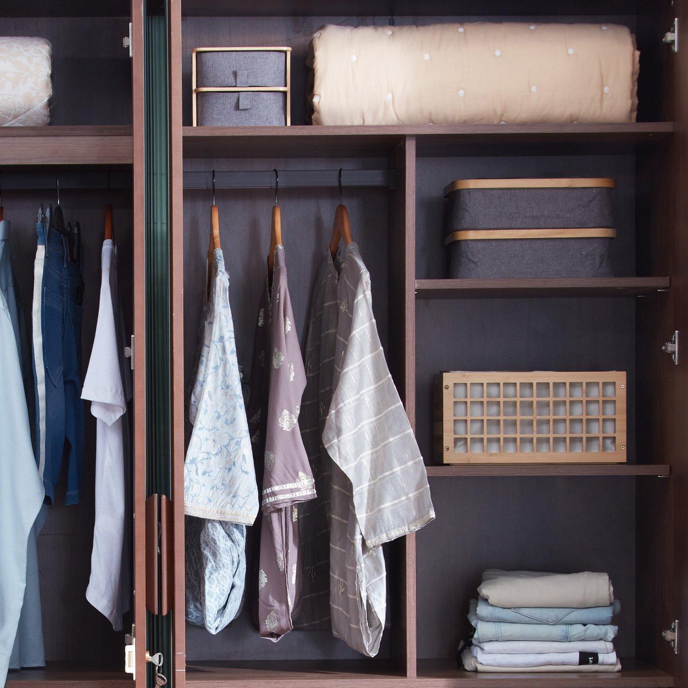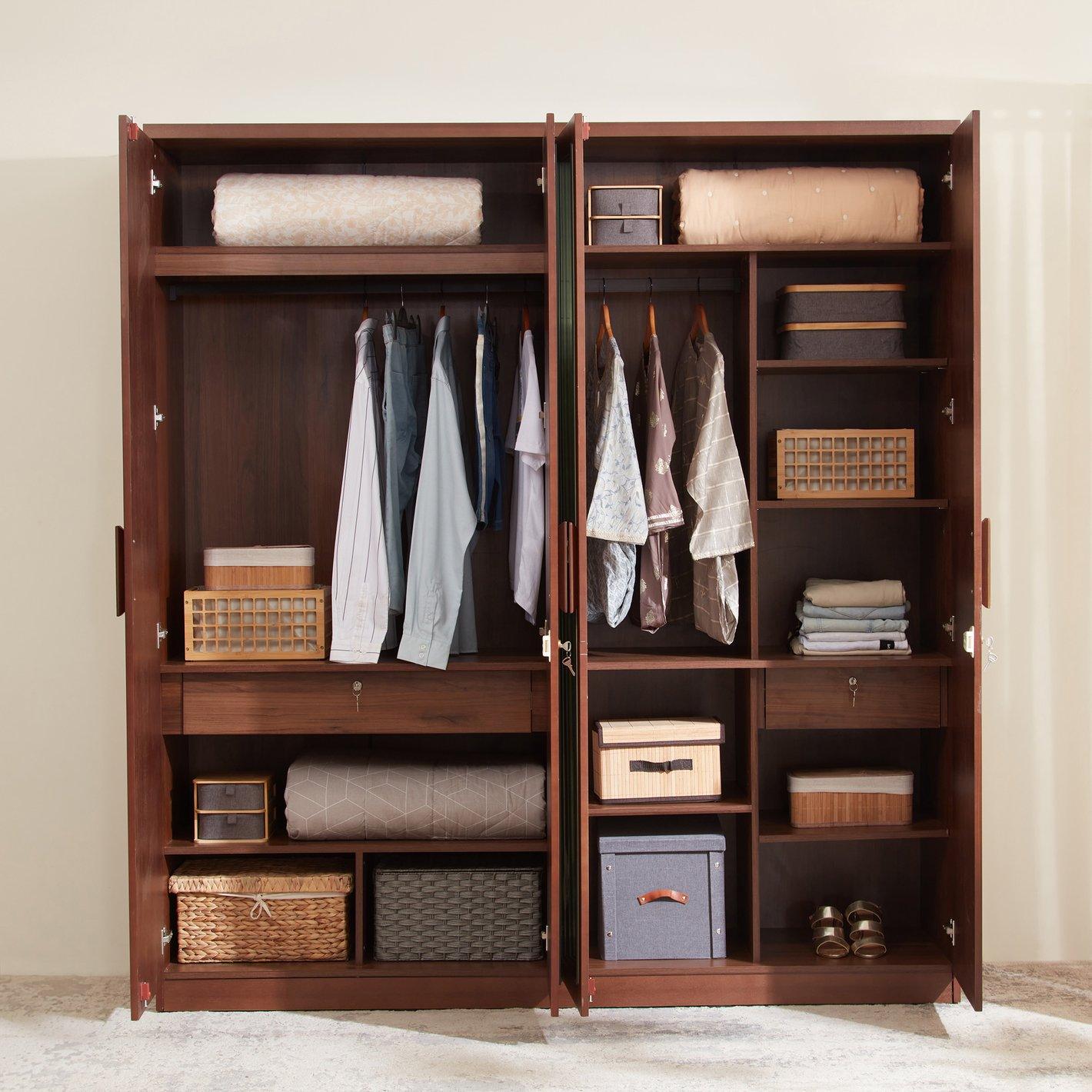 • Dual Hanging Zones: Includes two wide hanging sections with sturdy aluminum rails for coats, suits, and dresses.