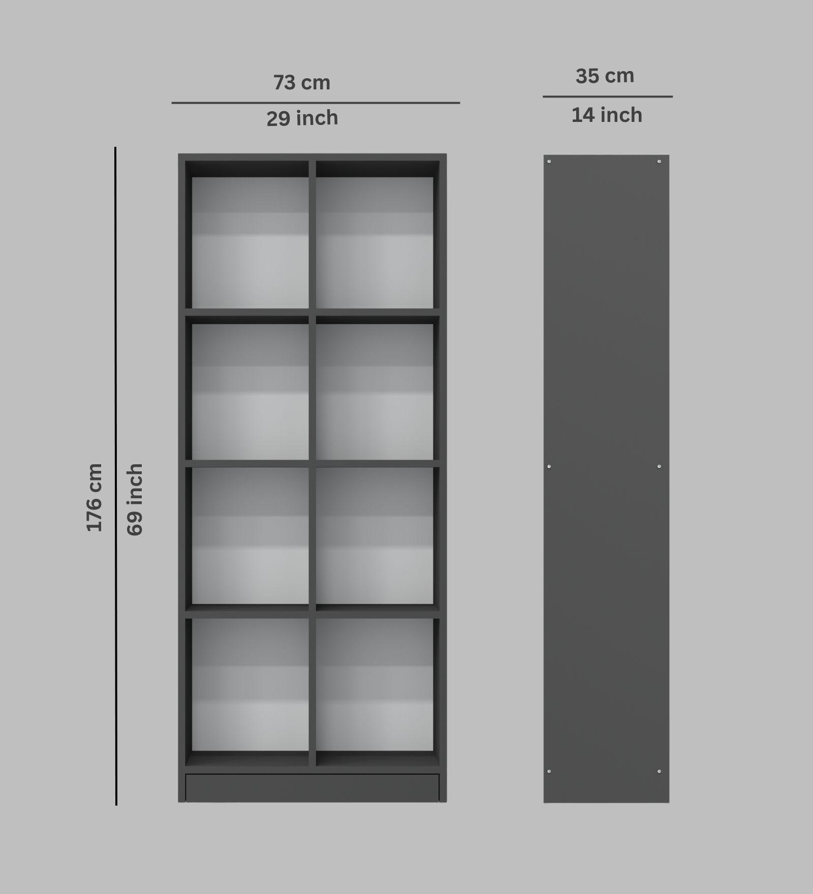 - W x H x D: 73 cm x 176 cm x 35 cm (2 ft 4 in x 5 ft 9 in x 1 ft 1 in)