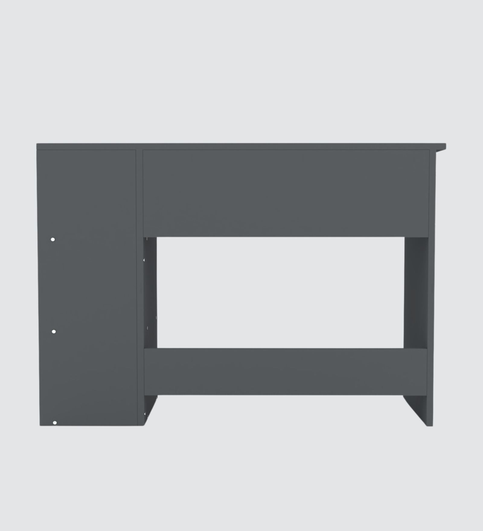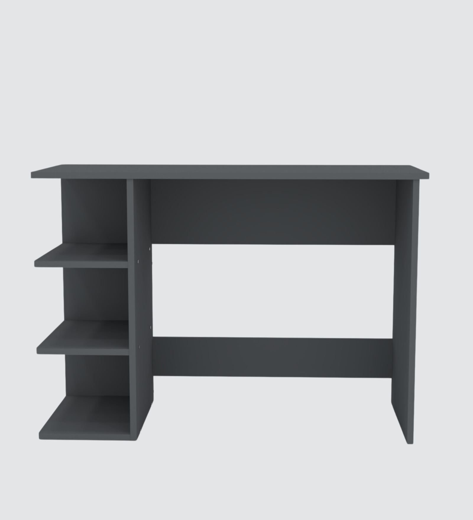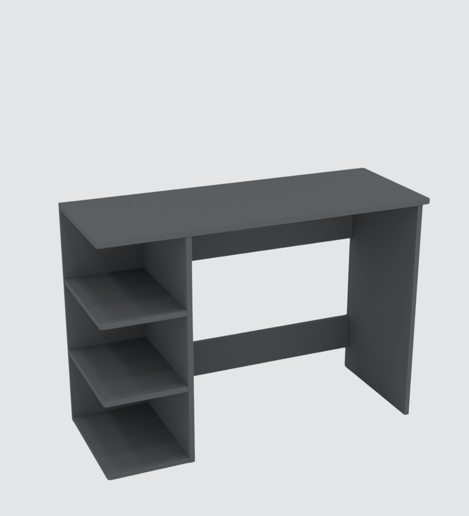The Slate Grey finish made from high-quality engineered wood, ensuring long-lasting durability and stability for daily use. The desk’s surface is polished to a smooth finish, enhancing the desk’s overall look while making it easy to clean and maintain is the perfect choice & Termite and borer resistant naturally. The desk is constructed with 17mm thick Engineering wood panels, providing a robust and solid surface that can support heavy loads, ensuring your workspaces remains stable and secure. Top surface for studying, reading, writing, and other academic or professional activities. The spacious 3 Side open shelf is perfect for storing books, files, and decorative items, doubling as a convenient bookshelf to keep everything within reach. Transform your study area into a sophisticated retreat, where every detail reflects your taste for distinctive design & Elevate your workspace. For any product related query please call the Toll free number on the box to get proper solution.