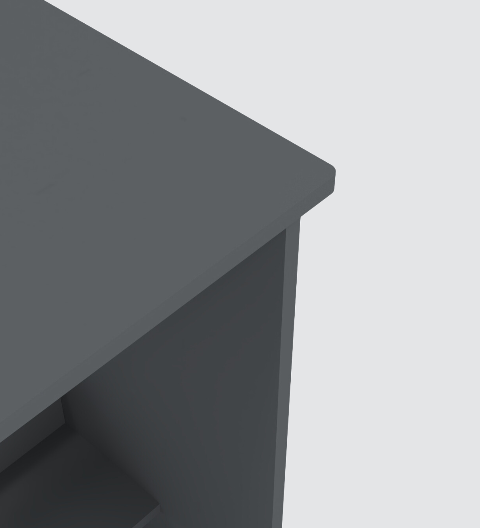 Corner-Rounded Top Computer Desk with 3-Tier Side Storage in Slate Grey Finish (DIY Assembly)