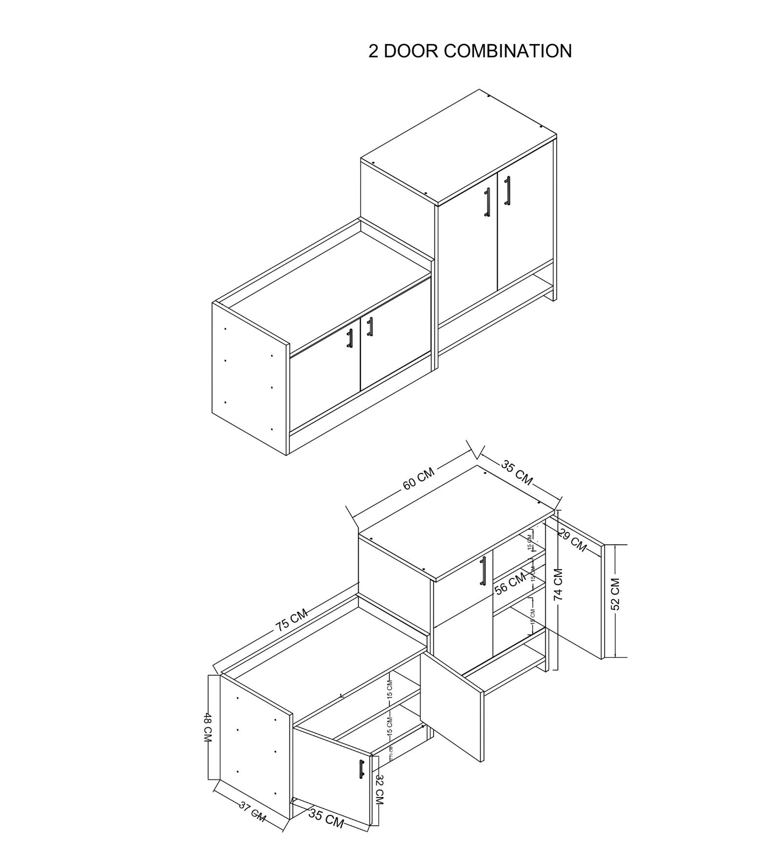 This combo of a two-door multipurpose cabinet and four-shelf shoe rack  is crafted from eco-friendly European standard engineered wood with a durable PU coating.