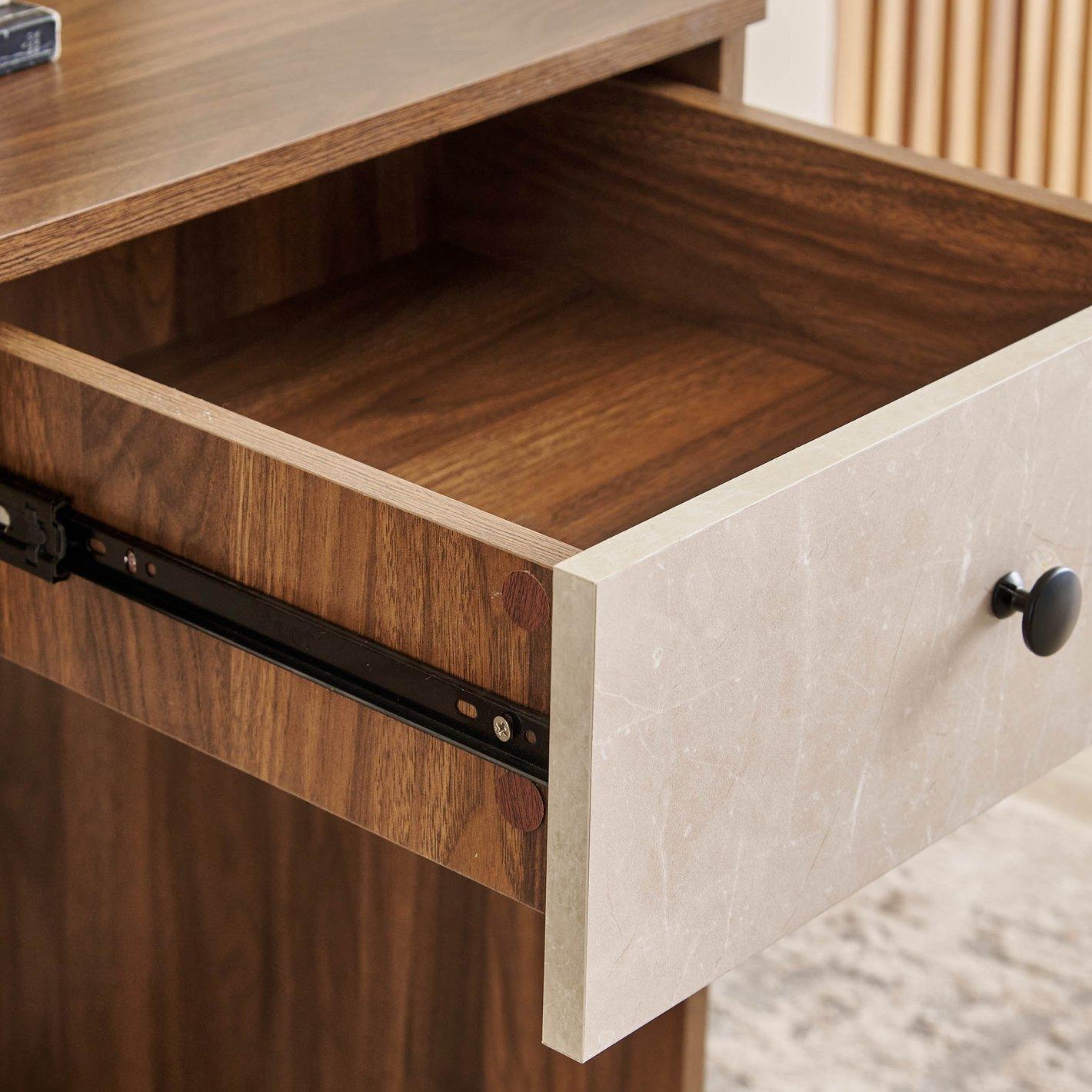 Material: Premium engineered wood with walnut-grain laminate
