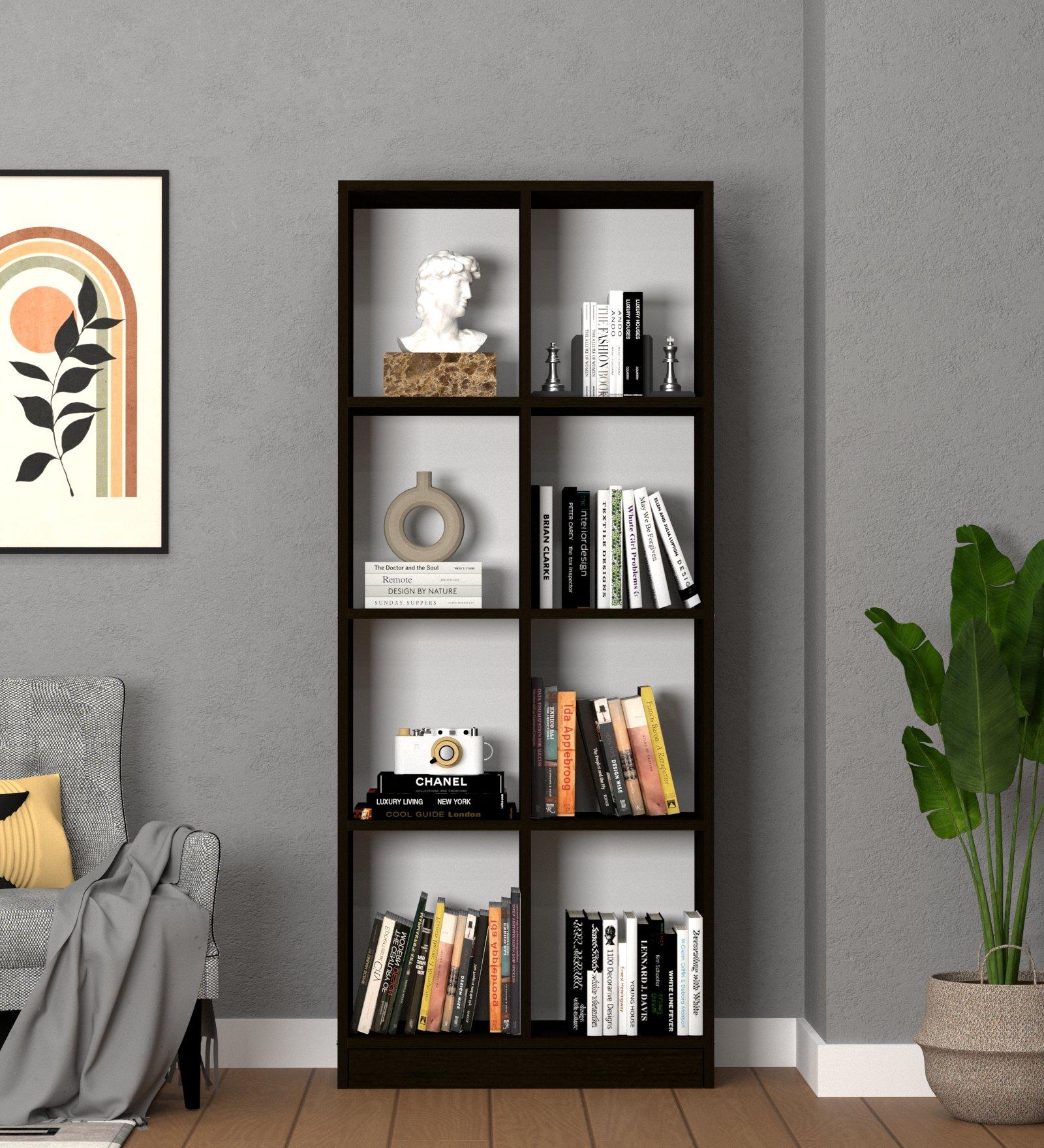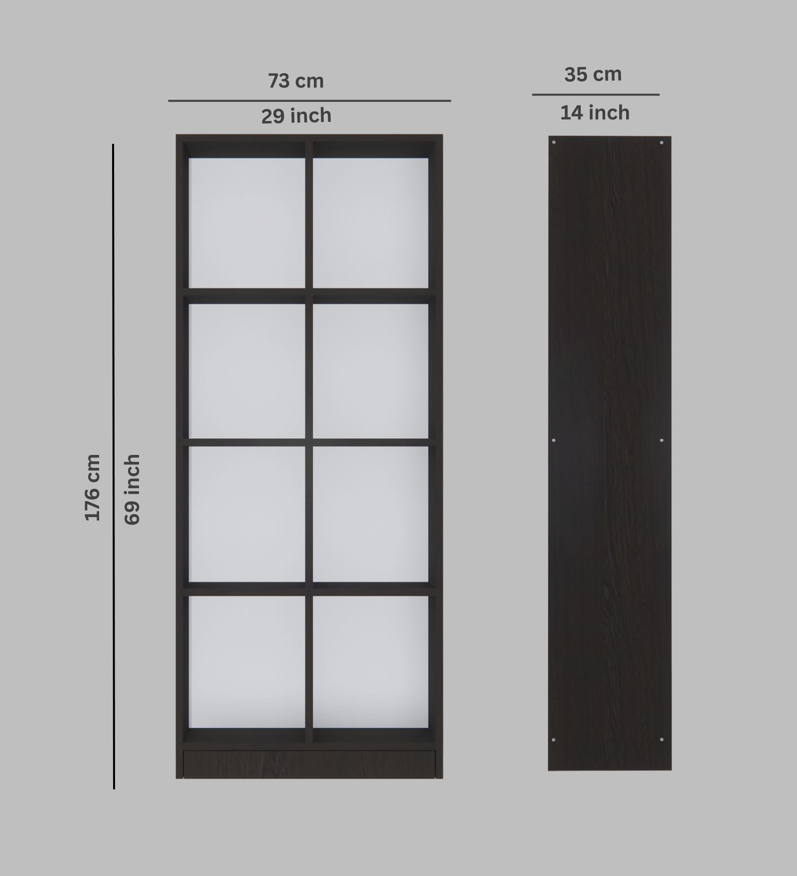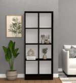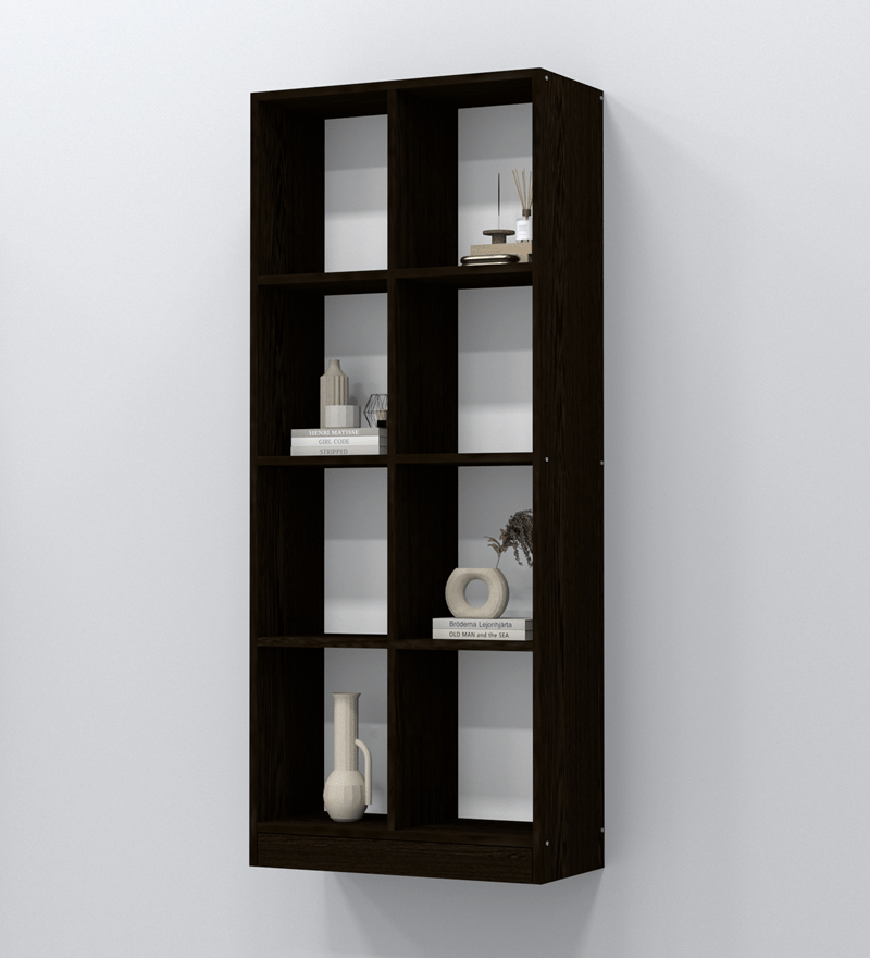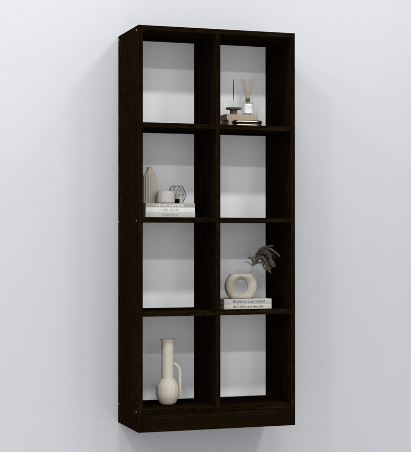 Book Shelf is a free standing furniture unit with multiple horizontal stack of racks or shelves which are used for varied purposes to store your books or display curios. The checkered maze of Matrix bookshelf fits seamlessly to your home corners. Matrix bookshelf creates an aesthetic visual pathway that is soothing to look at. 8 open compartments for quick access.
