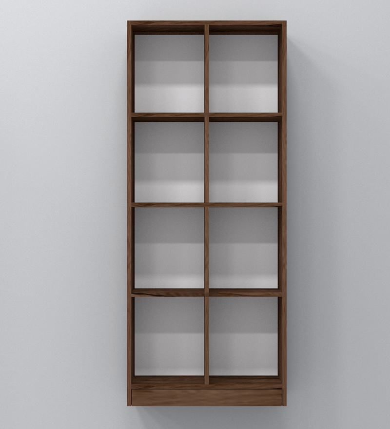 Book Shelf is a free standing furniture unit with multiple horizontal stack of racks or shelves which are used for varied purposes to store your books or display curios. The checkered maze of Matrix bookshelf fits seamlessly to your home corners. Matrix bookshelf creates an aesthetic visual pathway that is soothing to look at. 8 open compartments for quick access.