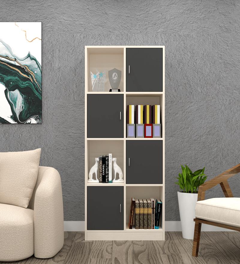 The Matrix Utility Cabinet is a sleek and modern furniture piece that is perfect for any contemporary living space. With its unique design and functional features, this cabinet is sure to impress. Equipped with multiple shelves, providing ample storage space for decorative and other items. 4 open compartments for quick access and 4 compartments with shutter, the shutters flaunt unique Asian Walnut finish with beautiful Stainless Steel Handles. With 10 years guarantee against Borer & Termites. The perfect balance between closed and open storage spaces, the Matrix bookshelf creates an aesthetic visual pathway that is soothing to look at. For any product related query please call the Toll free number on the box to get proper solution.
